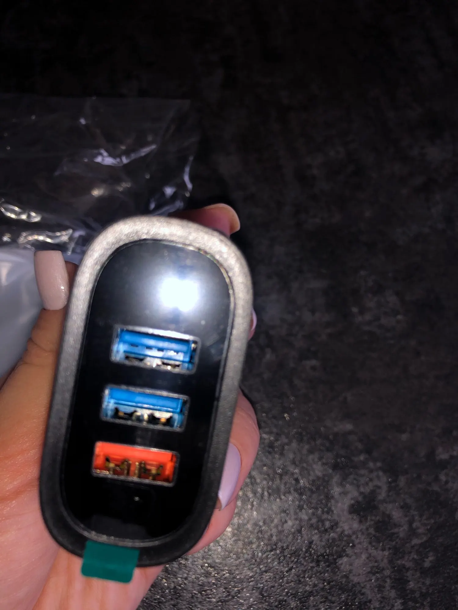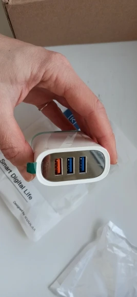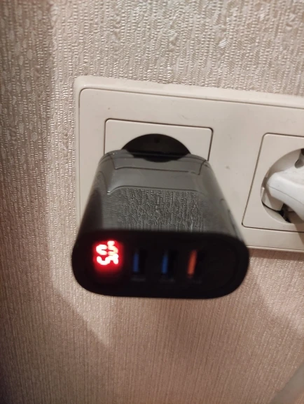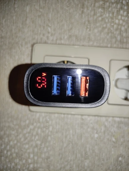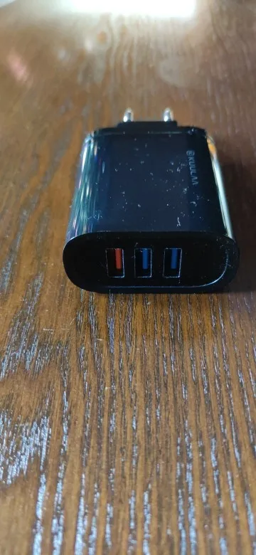 Продавец молодец! Отправил посылку сразу, доставка три недели, забрал на почте. Упаковано в обычный пакет с пупыркой без коробочки. Решил снять видео, демонстрирующее работу индикатора при подключении трёх устройств, но не успел... Подключил три пауэрбанка, включил камеру, не успел даже сфокусировать, как раздался громкий щелчок, зарядке пришёл мохнатый писец! Камера успела зафиксировать 3.25А, на фото. По итогу, осталось живым одно гнездо QC, индикатор и два гнезда с обычной зарядкой утрачены... Жду возврат за минусом потерянной скидки платформы за первый заказ. Заказ подобных устройств очень рискованное мероприятие, решайте сами рисковать своими деньгами или нет. Спор разрешился в мою пользу, как будет у вас не известно. А продавцу пять звёзд, товар отправлен, получен, всё четко.