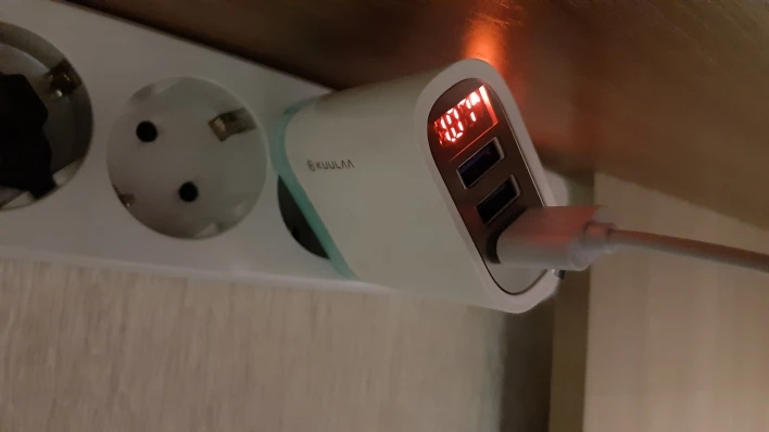 Доставка три недели с отслеживанием. Зарядка массивная и тяжелая. Поддерживает быструю зарядку Xiaomi Redmi Note 8 pro, его родная зарядка 18W. При подключение другого устройста, цифры суммирует, но как-то странно, маловато получается. Неприятно пахнет при работе, побаиваюсь оставлять телефон заряжаться ночью.