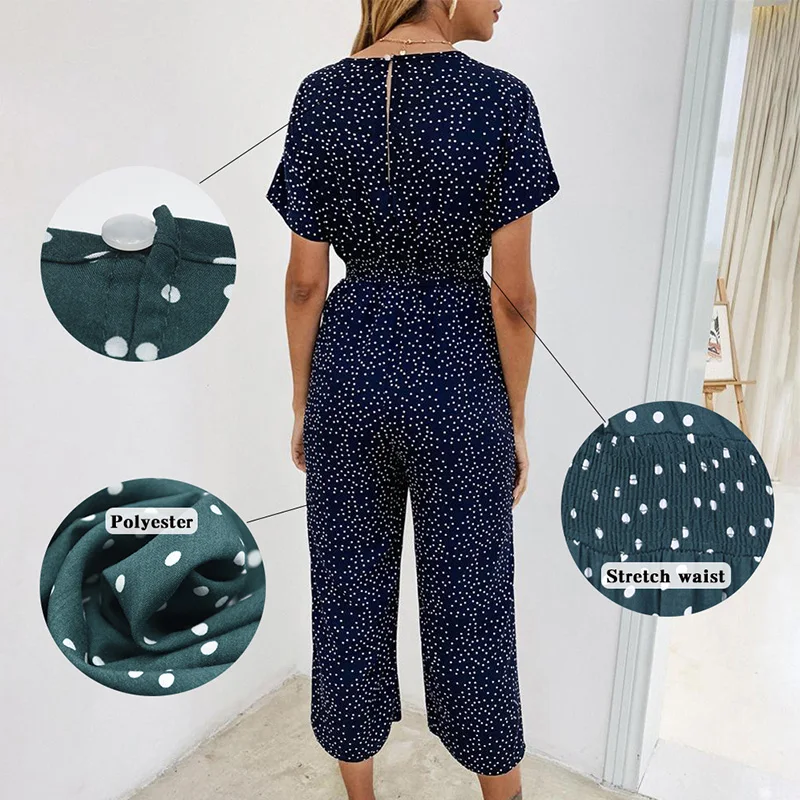 Комбинезон с коротким рукавом и широкими штанинами, Свободный комбинезон, женские комбинезоны, летние повседневные Комбинезоны с v-образным вырезом и карманами, мода 2022,комбинезоны для женщин,комбенизон женский