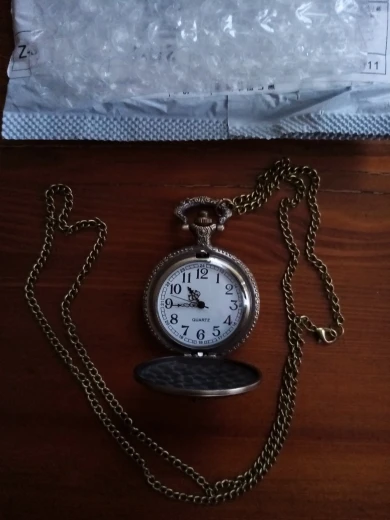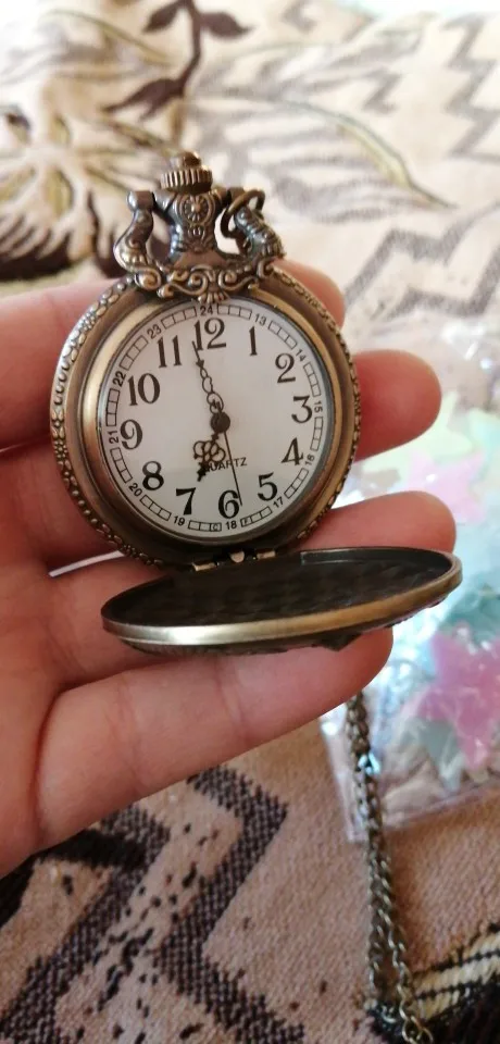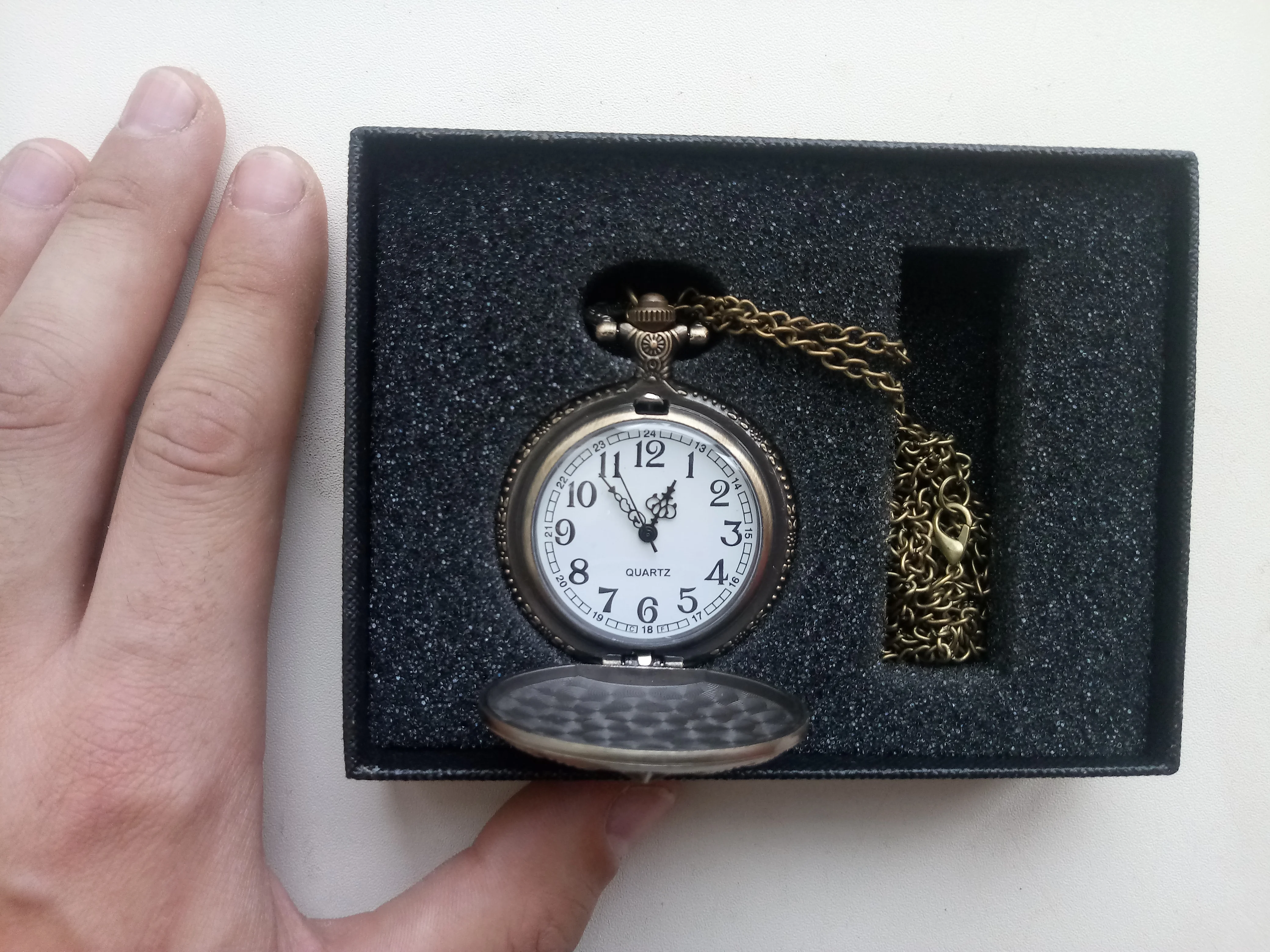 Очень долго шёл заказ, часы аккуратные, винтажные, очень красивый, чёткий циферблат и стрелки, цепочка выглядит очень дёшево, часы легкие, по ощущениям не прочные, со стороны выглядят отлично, но если взять в руки, то нет ощущения прочности и винтажности... А так в целом очень даже не плохо, для сувенира на подарок пойдут! Спасибо продавцу