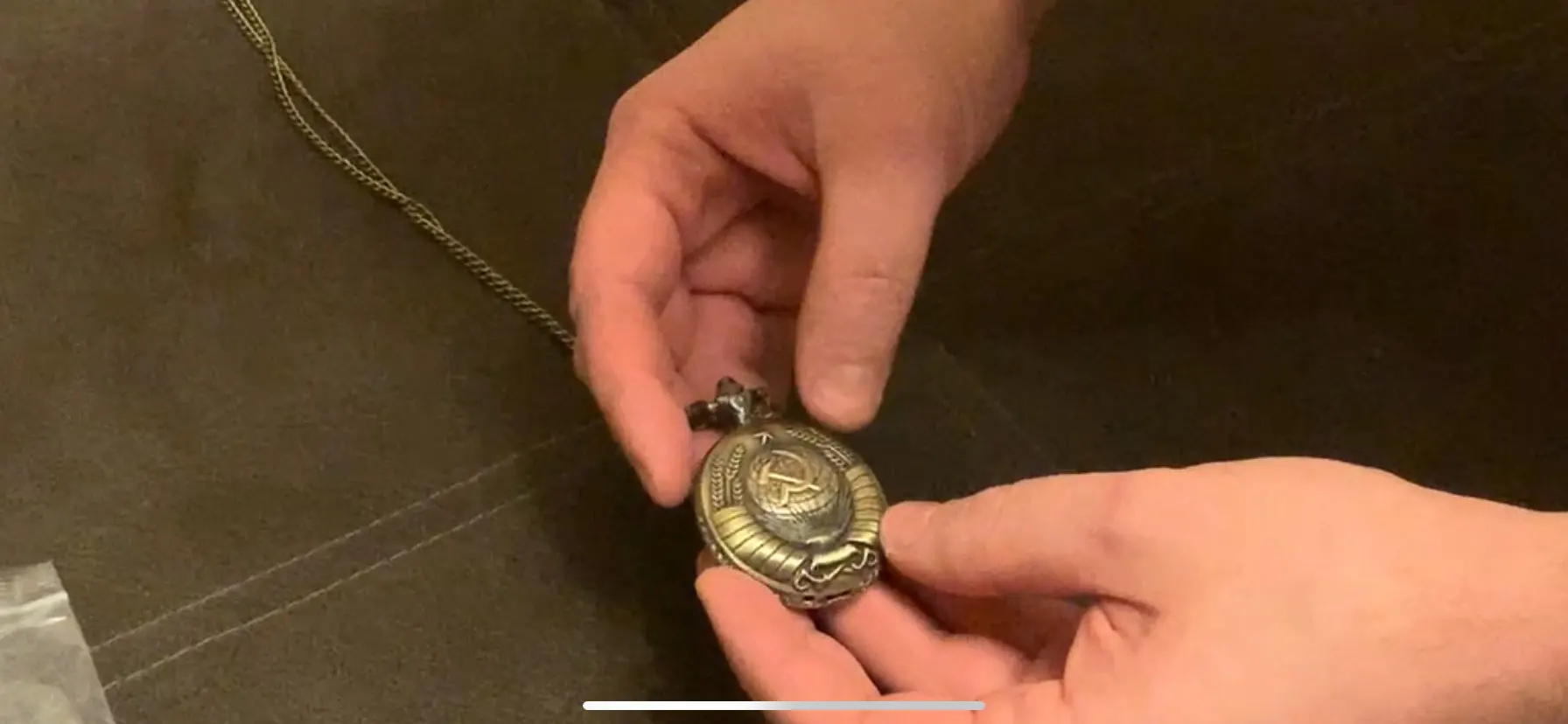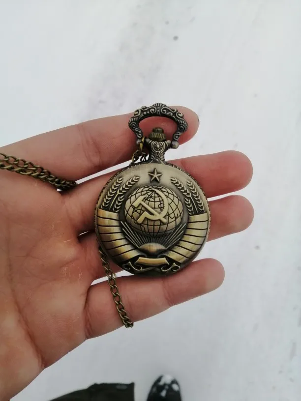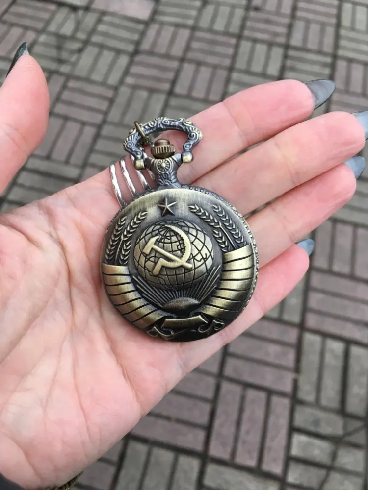Часы карманные, с серпом и молотом, бронзовые, в подарочной коробке