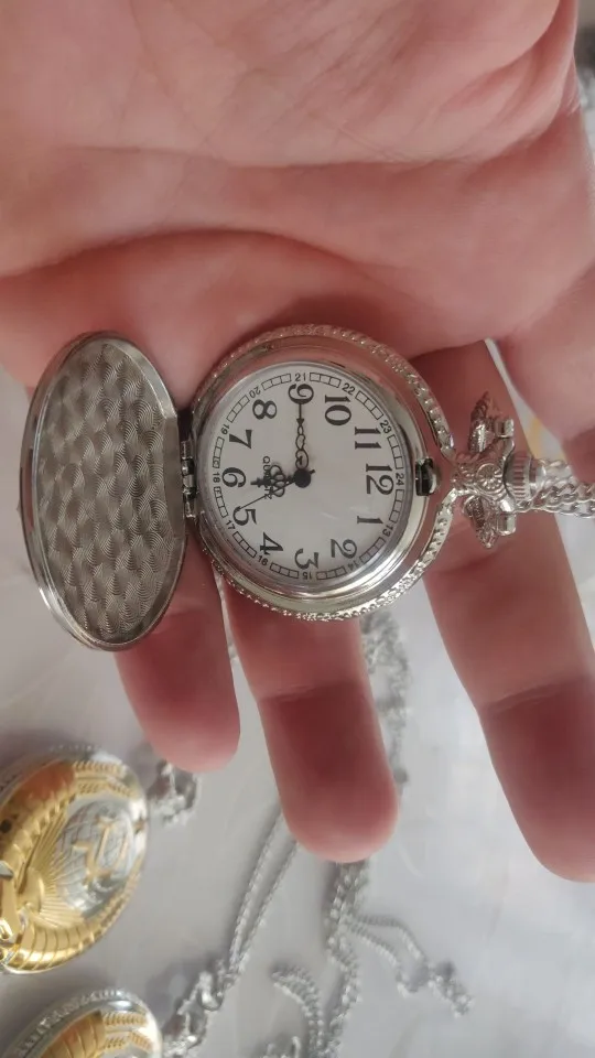 открыл, посмотрел, доволен, какая точность не знаю, скорее всего ее нет, но выглядят не плохо, крышка открывается только маловато , и цепочка хлюпенькая, а сами часы имеют даже какой то вес, приятно держать в руке а звук хода стрелок как на советском будильнике) как игрушку брать стоит)