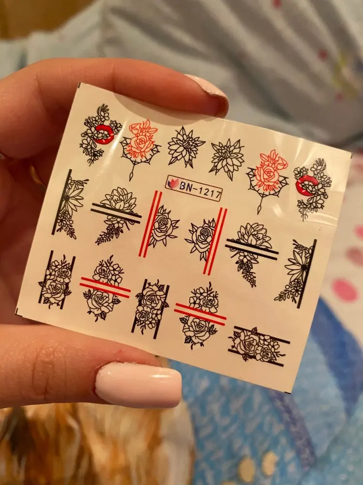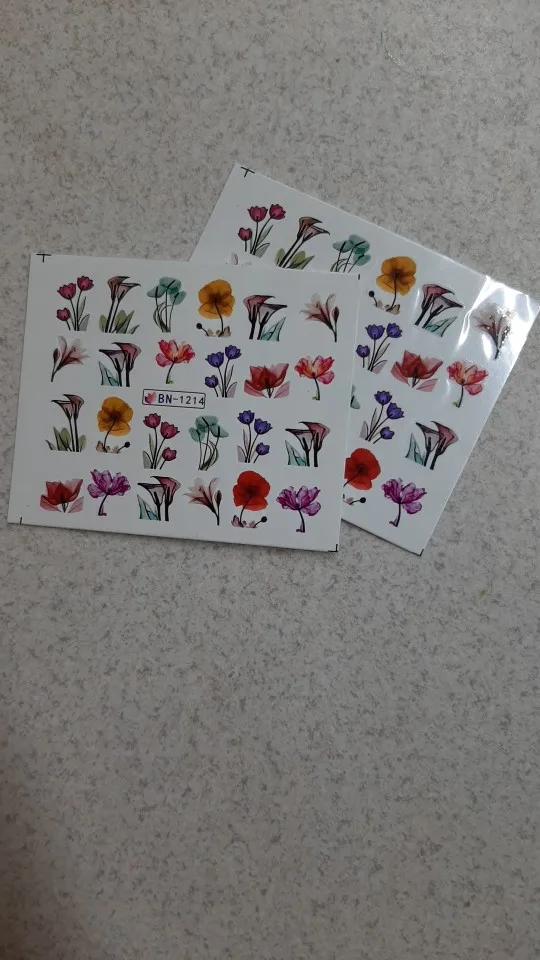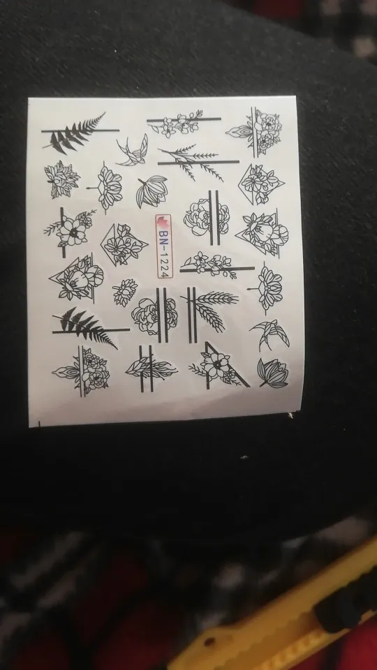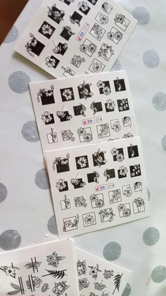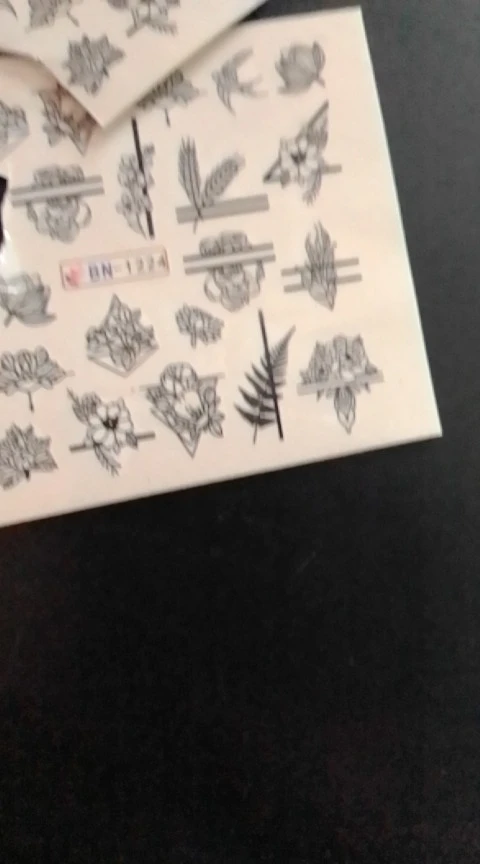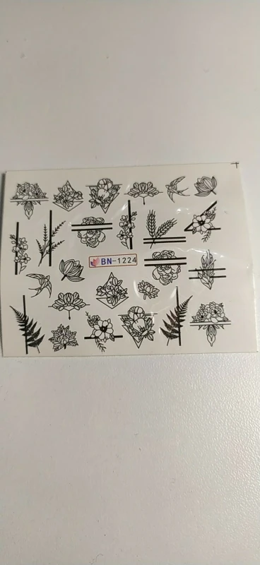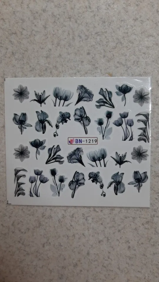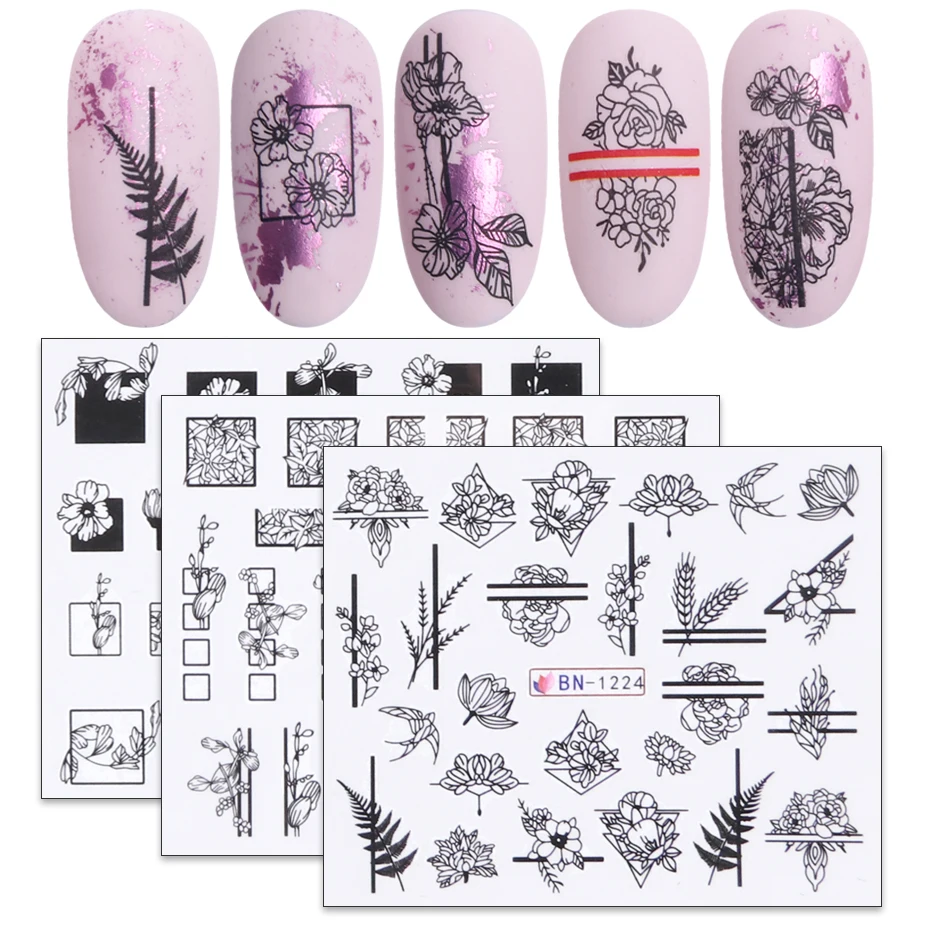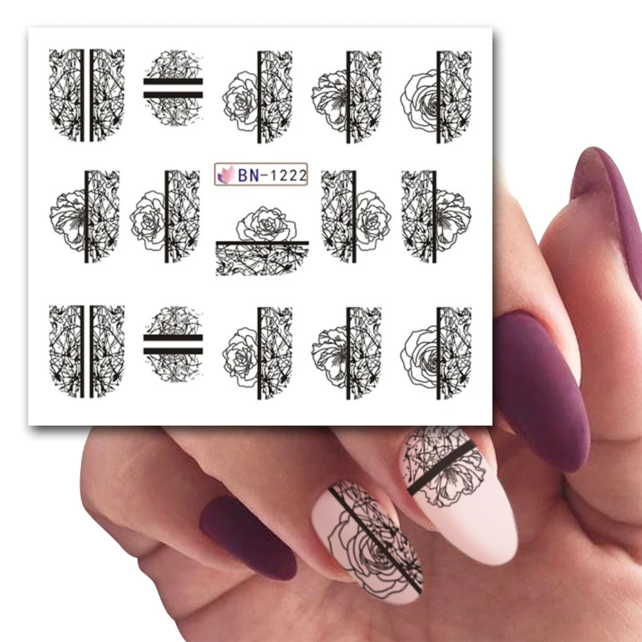 Наклейки для ногтей с черными и белыми цветами, Водные Наклейки с зелеными листьями для дизайна ногтей, декоративные тату для маникюра, LABN1213-1224-2, 1 шт.