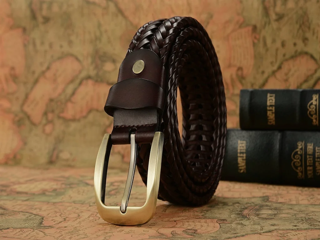 Мужской плетеный кожаный ремень, повседневный деловой ремень с пряжкой, роскошный модный ремень 105-120 см, три цвета