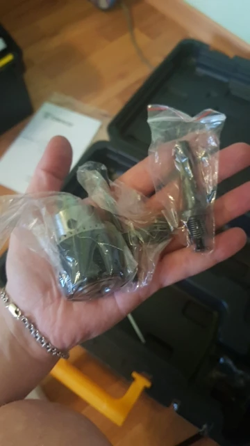 Прибыло все в целости, кейсы не побиты, как пишут многие. Шурик крутиться как зверь, в работе еще не пробовал. Замочки на кейсах слабенькие. Перф тоже работает, но пока не использовал. При первом включении перфа без нагрузки, на ХХ, запашок пошел, посмотрим как дальше будет. Шумит сильно, кажется как без смазки, разберем посмотрим.