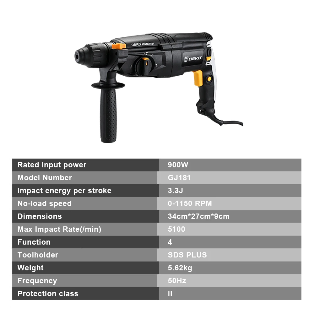 Электрический перфоратор DEKO GJ181, 220 В, 26 мм, с коробкой BMC, аксессуары, ударная дрель для деревообработки