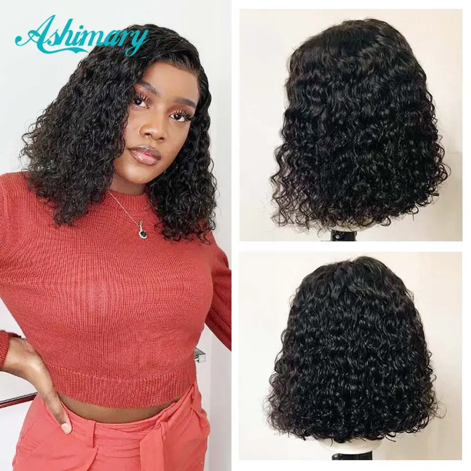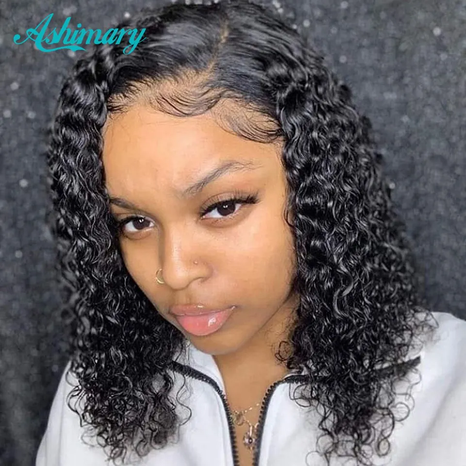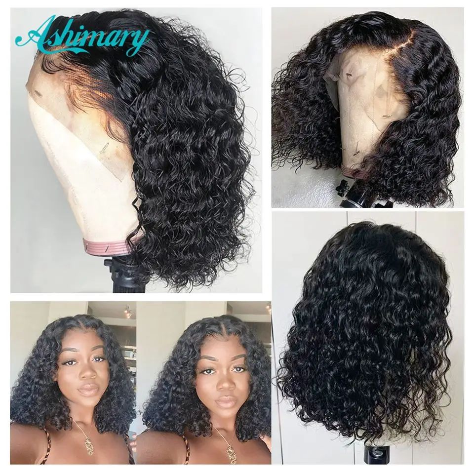 4X413X4 Боба парик Синтетические волосы на кружеве парики из натуральных волос глубокая волна фронтальной парик для Для женщин 180 плотность, короткая стрижка, бразильские волосы парик