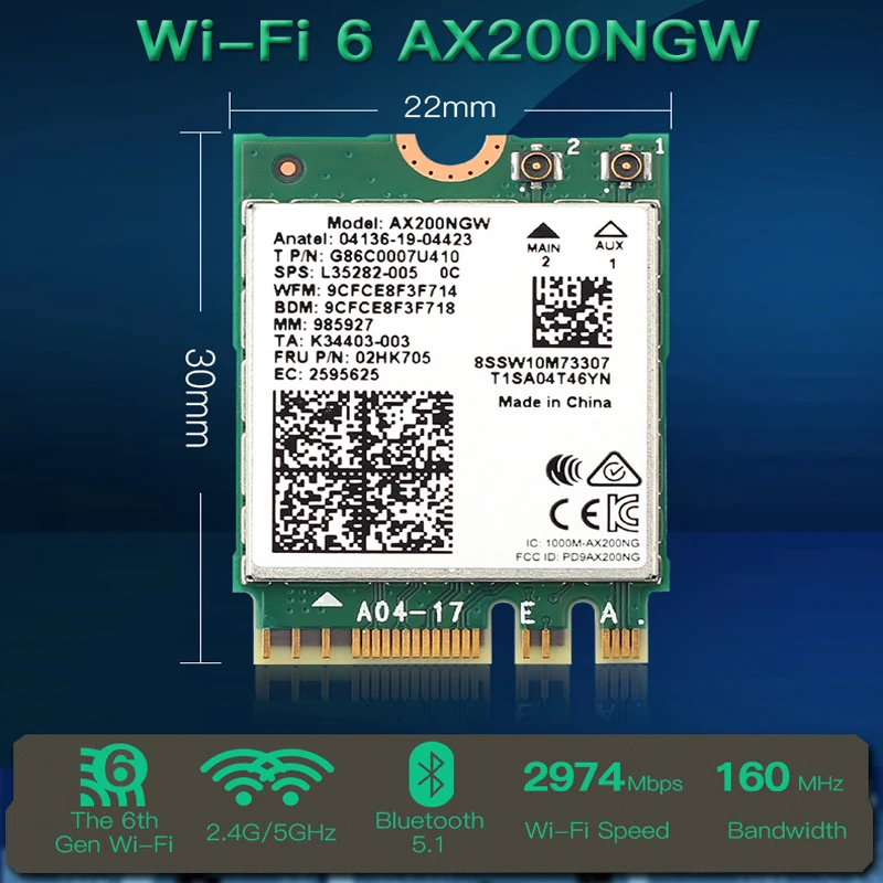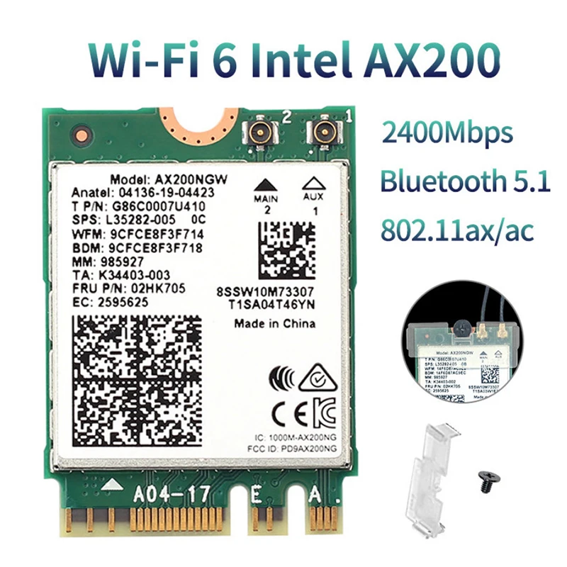 Двухдиапазонный 2,4 Гбитс Intel Wi-Fi 6E AX200 AX200NGW 802.11axac MU-MIMO 2x2 Wifi модуль NGFF M.2 Bluetooth 5,1 сетевая карта