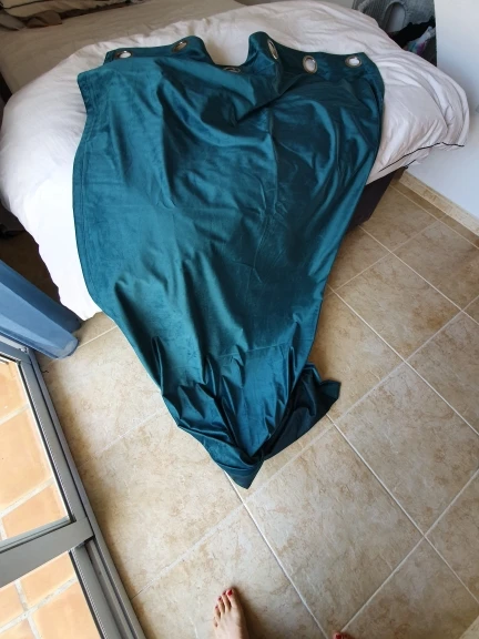 Очень хорошие шторы! Достаточно дорогие, но стоят своих денег. Бархат очень мягкий, приятный наощупь. Цвет очень красивый. Как на фото. Размер делали по моим меркам. У нас сейчас пасмурно, не проверить на сколько хорошо они затемняют. Но, похоже, что это совсем не блекаут.