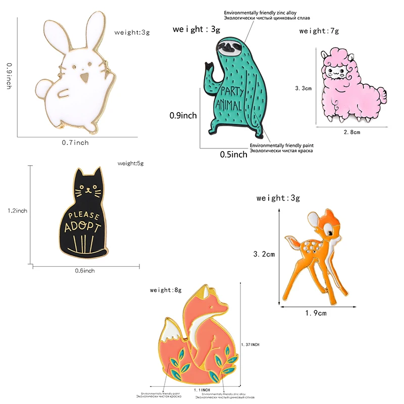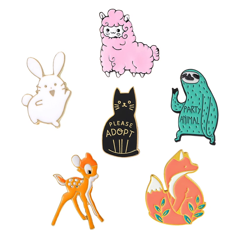 Брошь в виде кролика, лисы, Ленивца, кошки, овцы, металлические значки