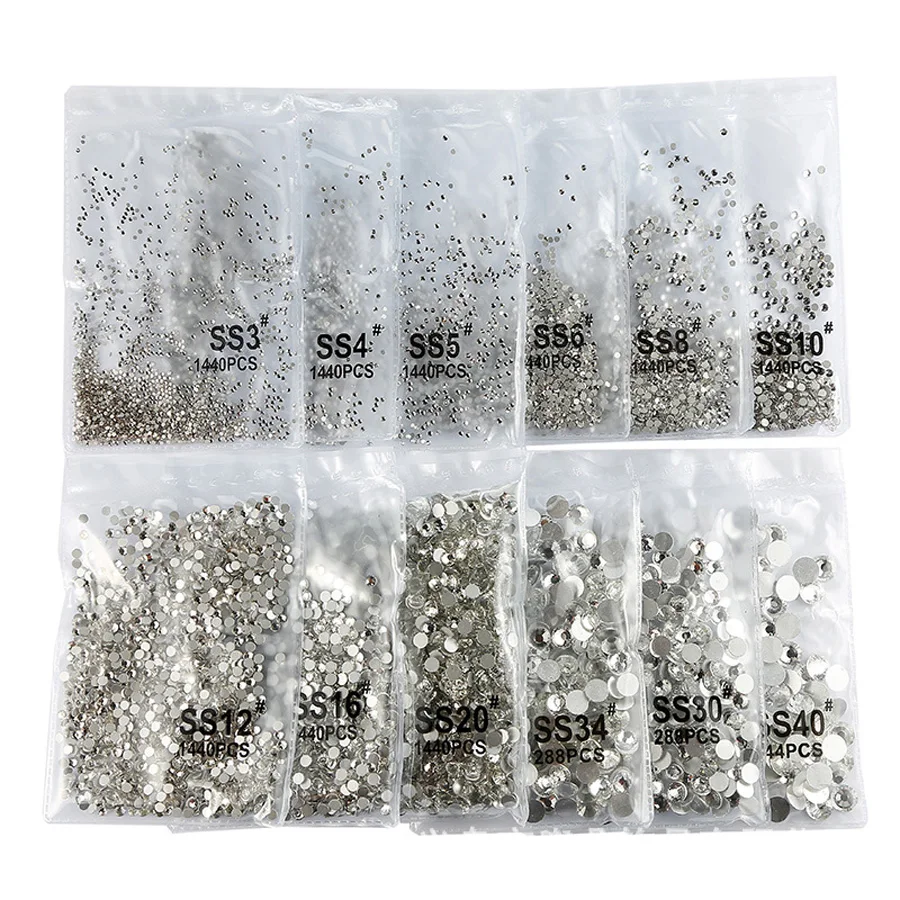 1440 шт., Супер Блестящий Многоцветный Стразы без горячей фиксации ...