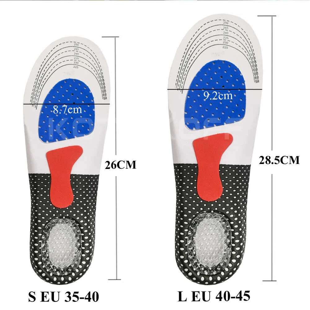 Высокое качество для спортивной обуви * Стельки из сетчатого материала BK пропускают воздух и поглощают удары. * Материал EVA TPU с супер эластичностью обеспечивает комфорт при ходьбе и ношении. * Легкие и удобные, мягкие и дышащие. * U-образная чаша для пятки более плотно прилегает к вашей стопе. * Сотовая конструкция амортизация и сброс давления. * Свободный размер можно легко отрезать по вашему требованию. * Подходит для многих туфель, как ботинки, спортивная обувь .. Инструкции Снимите с обуви уже имеющиеся стельки. Вставьте эти стельки в обувь для измерения размера. Отделка для точного подгонки (подсказка: Используйте оригинальные стельки, чтобы отследить перед срезом). Сначала обрежьте носок до размера, затем по бокам и пятке для оптимального комфорта. Пожалуйста, посмотрите фотографии перед покупкой для определения размера. Замеры сделаны вручную, поэтому возможны отклонения в 1 см. S (35-40) длина 26 см L (40-45) Длина 28,5 см Комплектация: 1 х 1 пара стелек