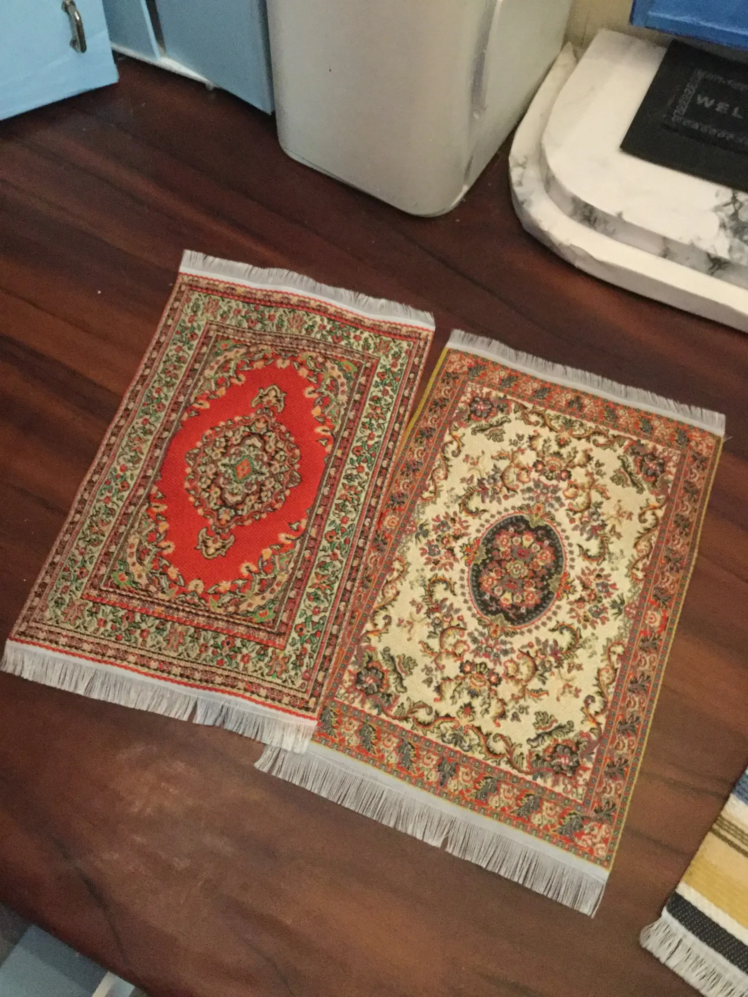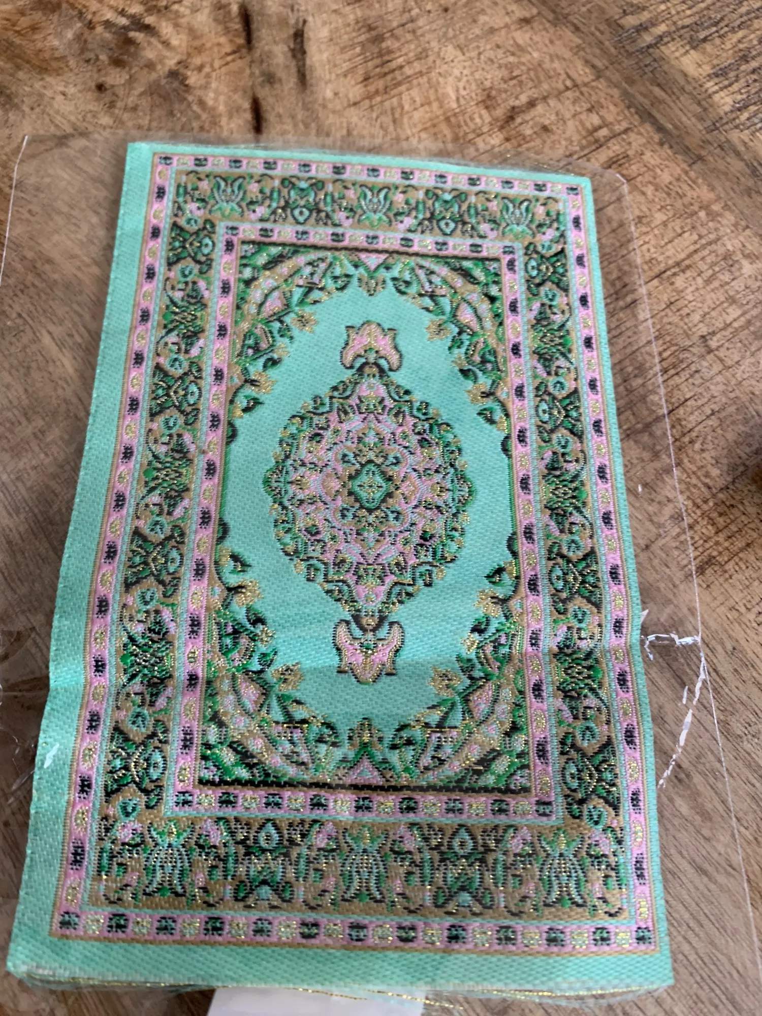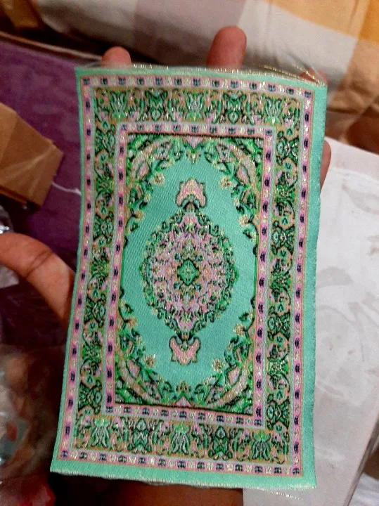 Красивый малюсенький коврик. Дочка забрала в свой домик кукол. Только нитки вылезают и коврик распускается активно. Очень дорогая доставка, продавцу даже пришлось продлить срок.