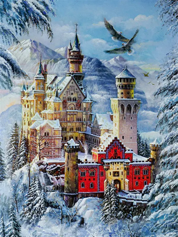 Алмазная вышивка, квадратная вышивка, зима Ландшафтная мозаика с бриллиантами, снег, пейзаж, картина, выложенная алмазами, стразы для вышивки крестом