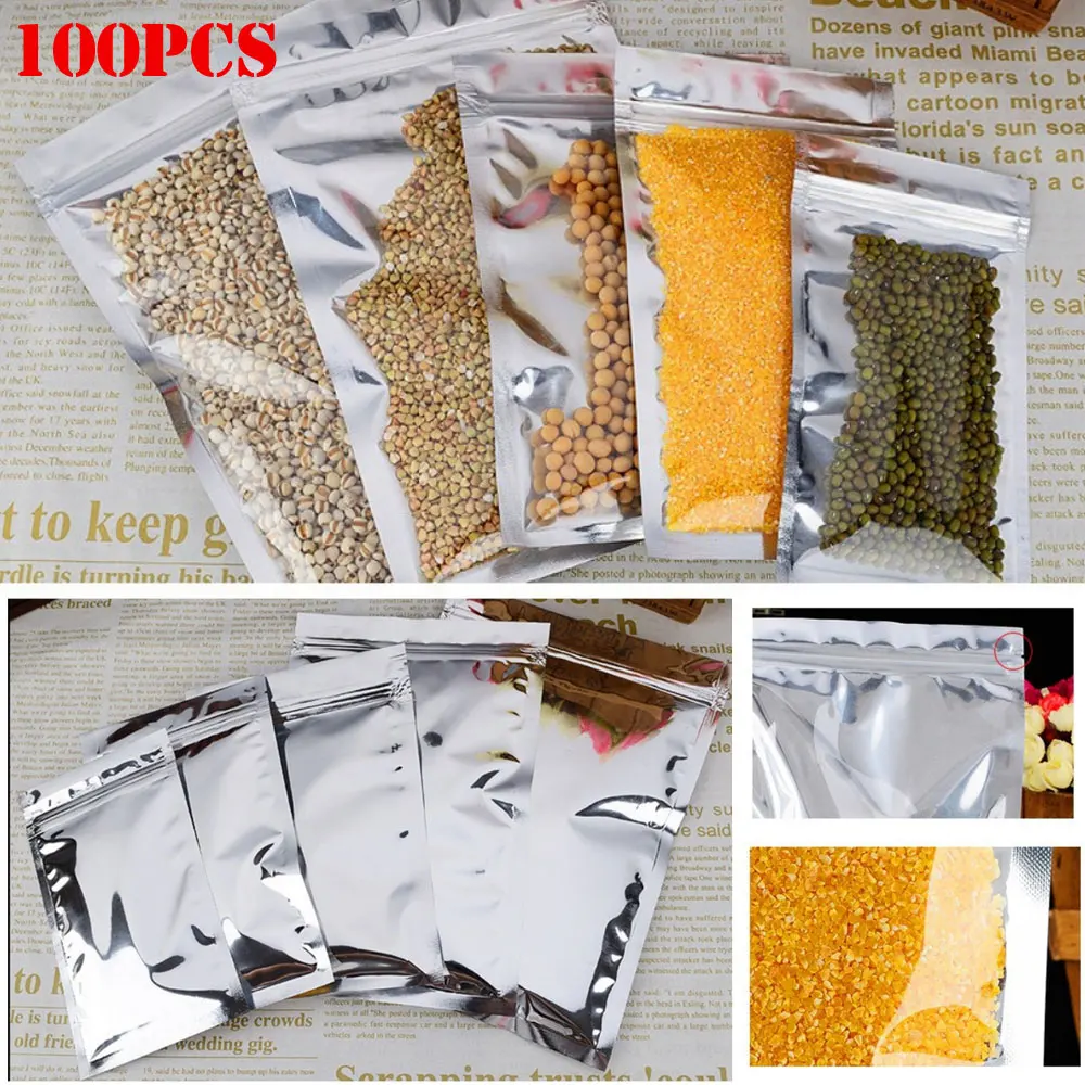 100 шт.лот 12x20 см прозрачные мешки с замком из алюминиевой фольги...