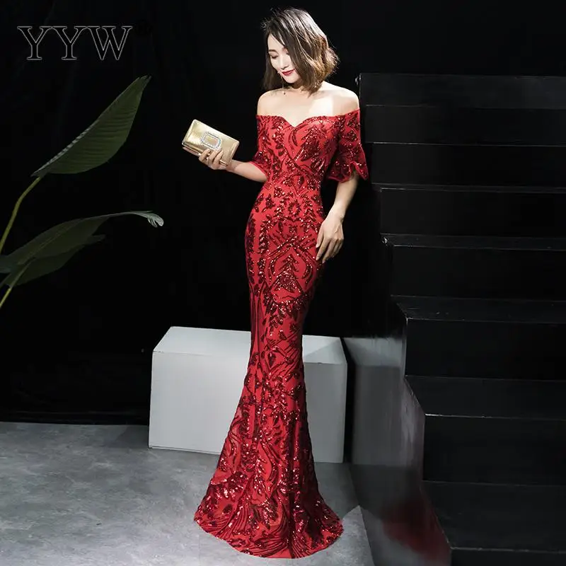 Женское вечернее платье, длинное облегающее платье с открытыми плечами и расклешенными рукавами, с золотыми цветами, с блестками, 2020