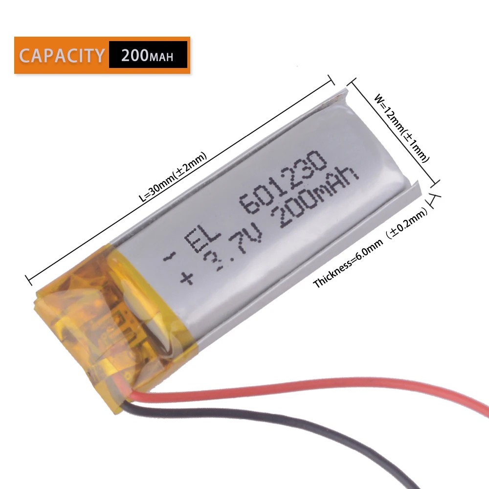Полимерная литиевая батарея 3,7 в, 601230 200 мАч prestigio dvr 585 Bluetooth гарнитура носимые электронные устройства 601230