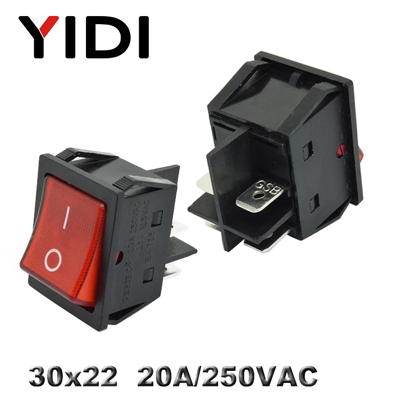 KCD4-201 30x22 30A 250VAC сверхмощный KCD4 кулисный переключатель 20A 250VAC DPST ON OFF с фиксацией 12V 220V красный зеленый синий светодиодный светильник