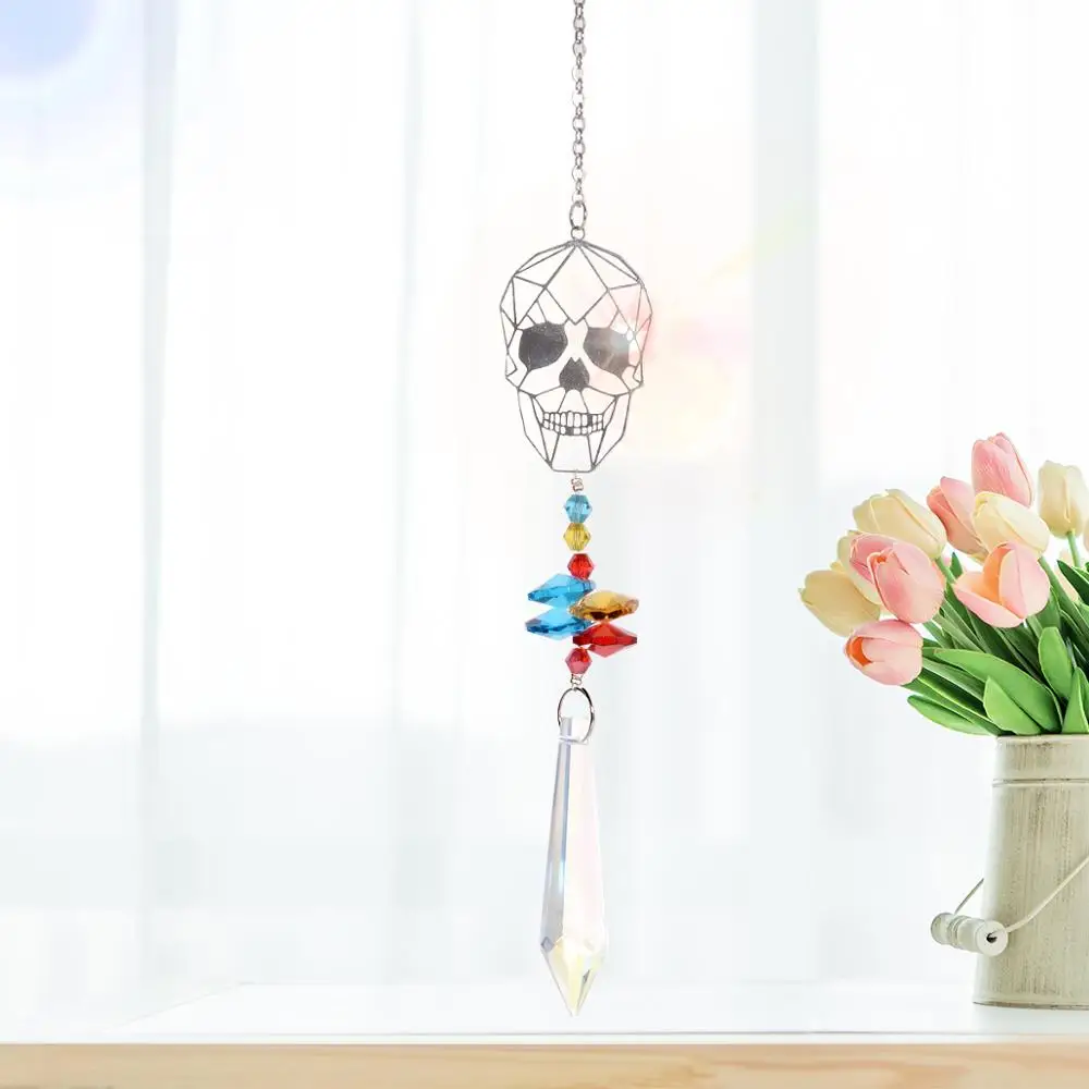 Металлическая 3D чакры стимпанк Череп Подвески феншуй окно подвесное украшение Люстра призмы Ловец снов стеклянная подвеска