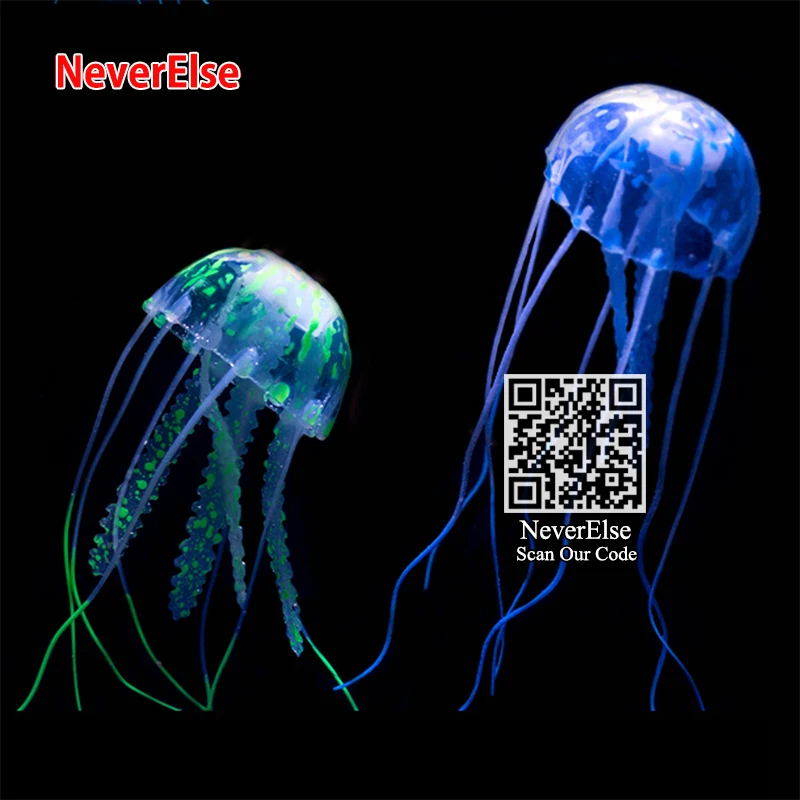 Украшение в виде Медузы для аквариума, аксессуары для аквариума, светящиеся в темноте, с силиконовой линией и всасыванием, 3 размера (случайный цвет)