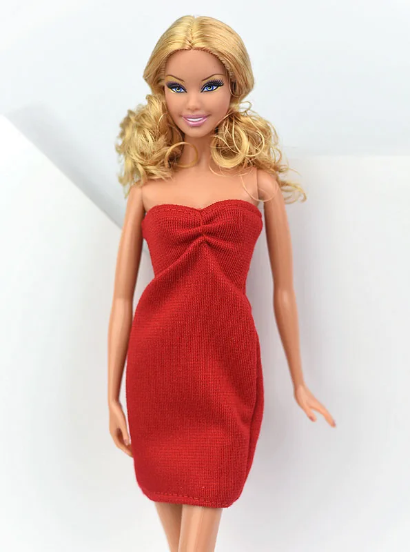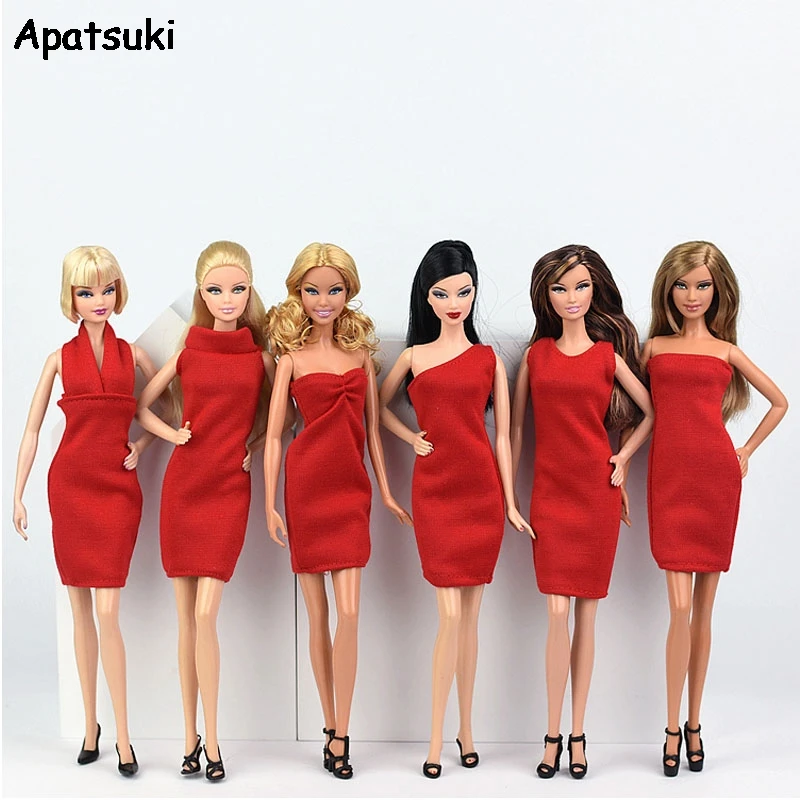 6 шт.лот, красное модное платье для куклы Барби, вечерняя одежда, вечерние короткие платья для куклы Барби, аксессуары для кукол 16