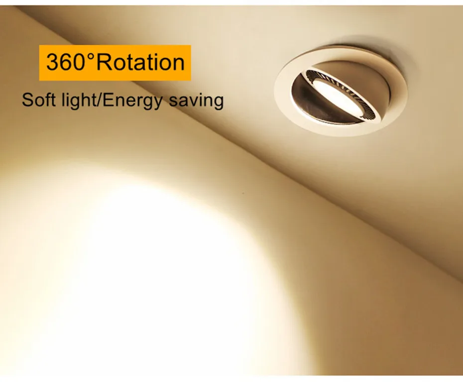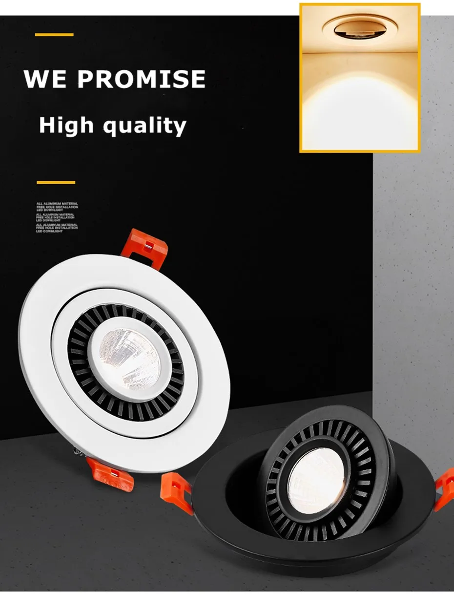 Приглушаемая светодиодная Встраиваемая потолочная лампа, светильник льник точечный с поворотом на 360 градусов, для кухни, 5 Вт, 7 Вт, 10 Вт, 12 Вт