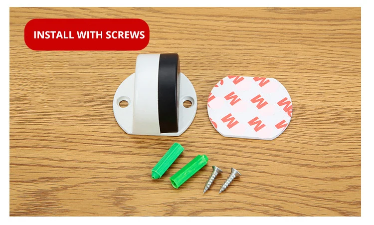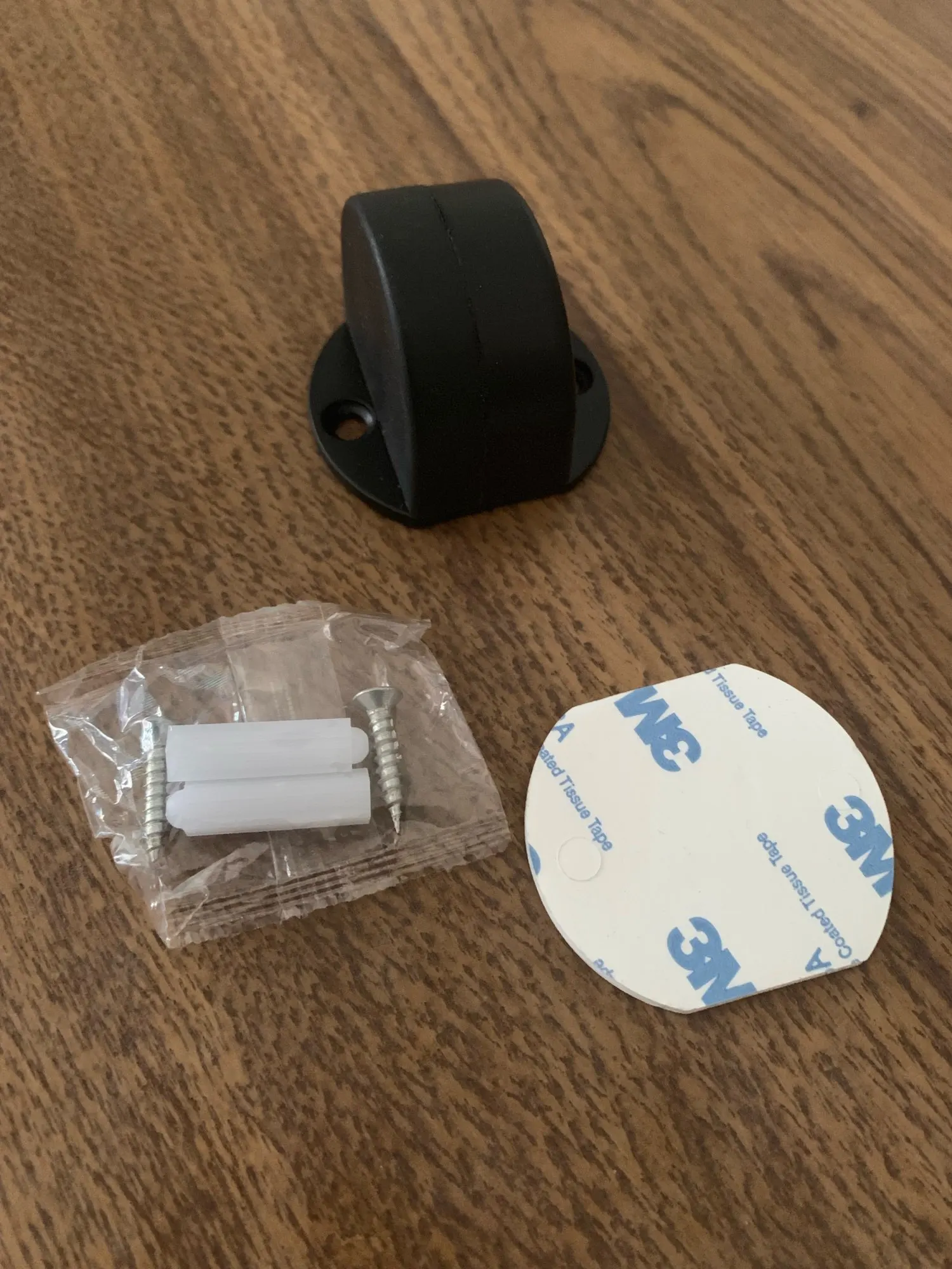 Моя ошибка. Эта дверная остановка не имеет магнитов, не будет оставаться на месте при сильном ветре.