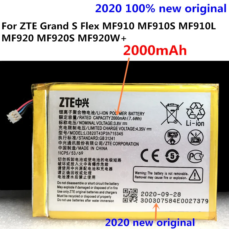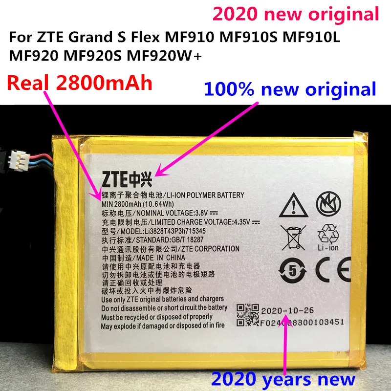 Новый оригинальный аккумулятор Li3820T43P3h715345 для ZTE MF910 MF910S MF910L MF910NL MF910V MF920 MF920A MF920S MF920TS MF920V MF920VS