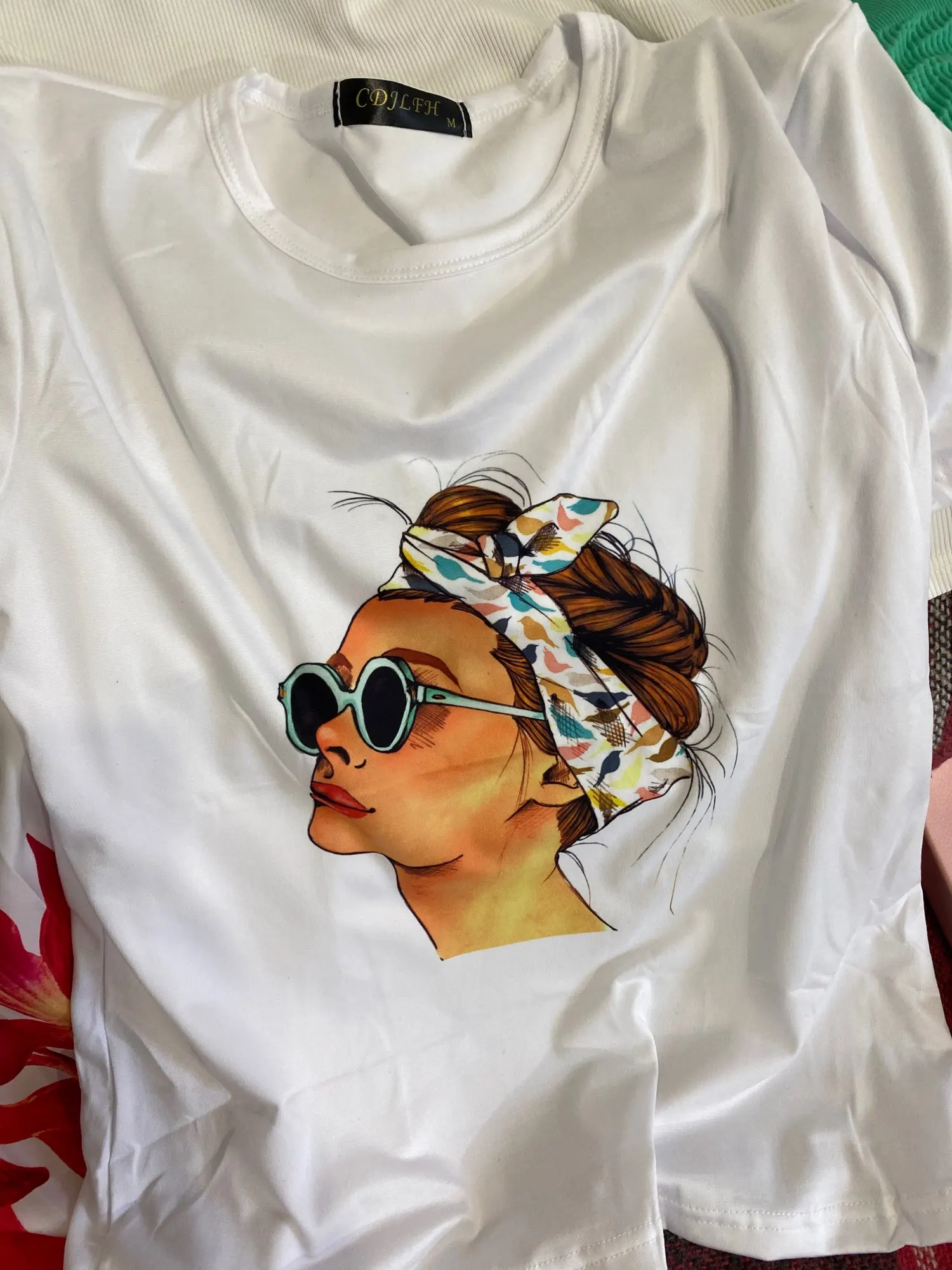 Изображение показывает рисунок девочки большего размера, чем на футболке. Трикотажная ткань из синтетической ткани, не ждите хлопковой футболки. Быстрая доставка.