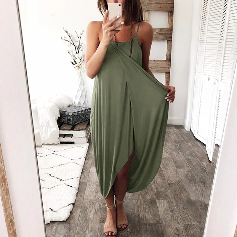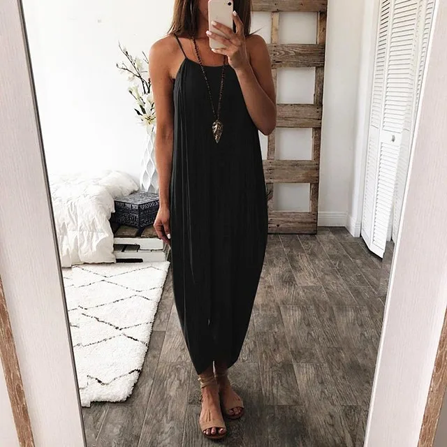 Платье женское длинное свободного кроя, повседневное элегантное вечернее Макси платье на бретелях без рукавов, в стиле бохо, Пляжное Платье для мам, на лето
