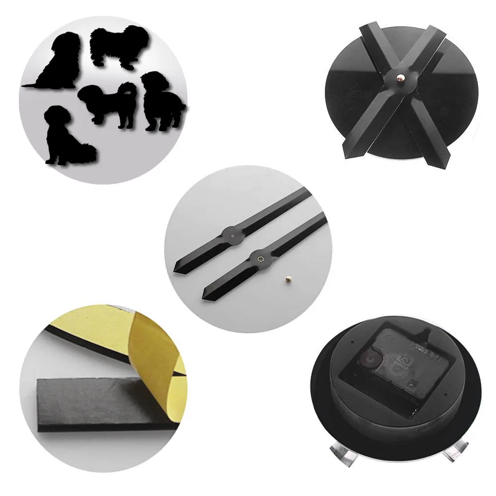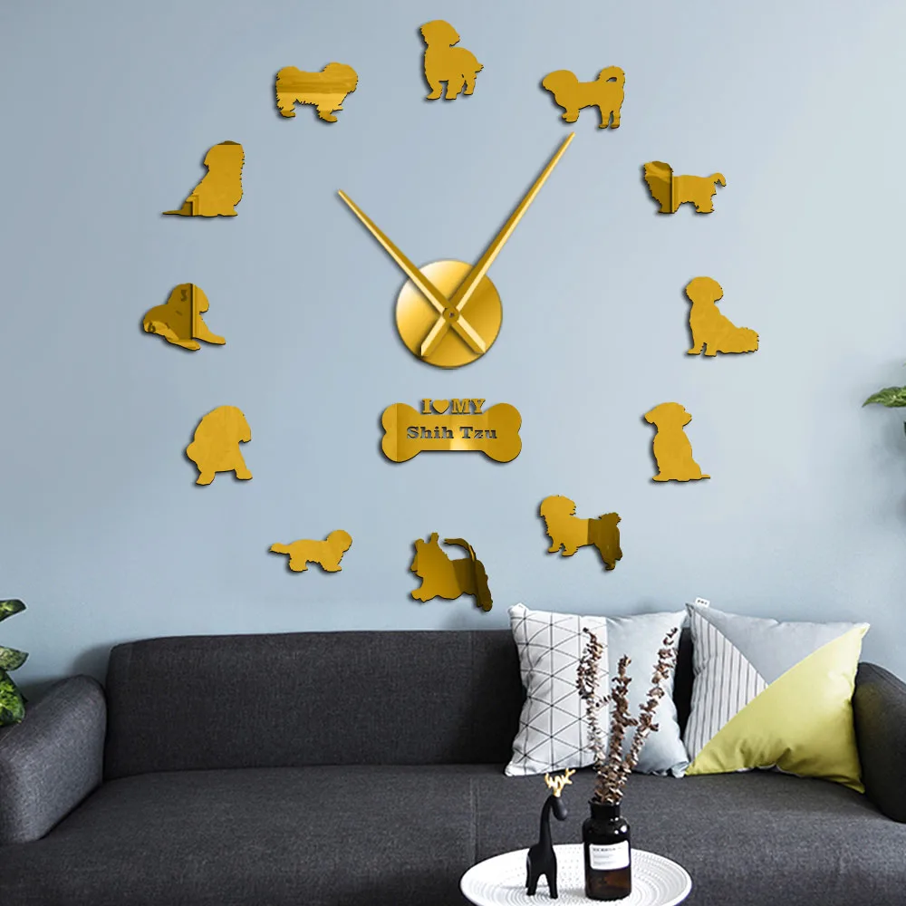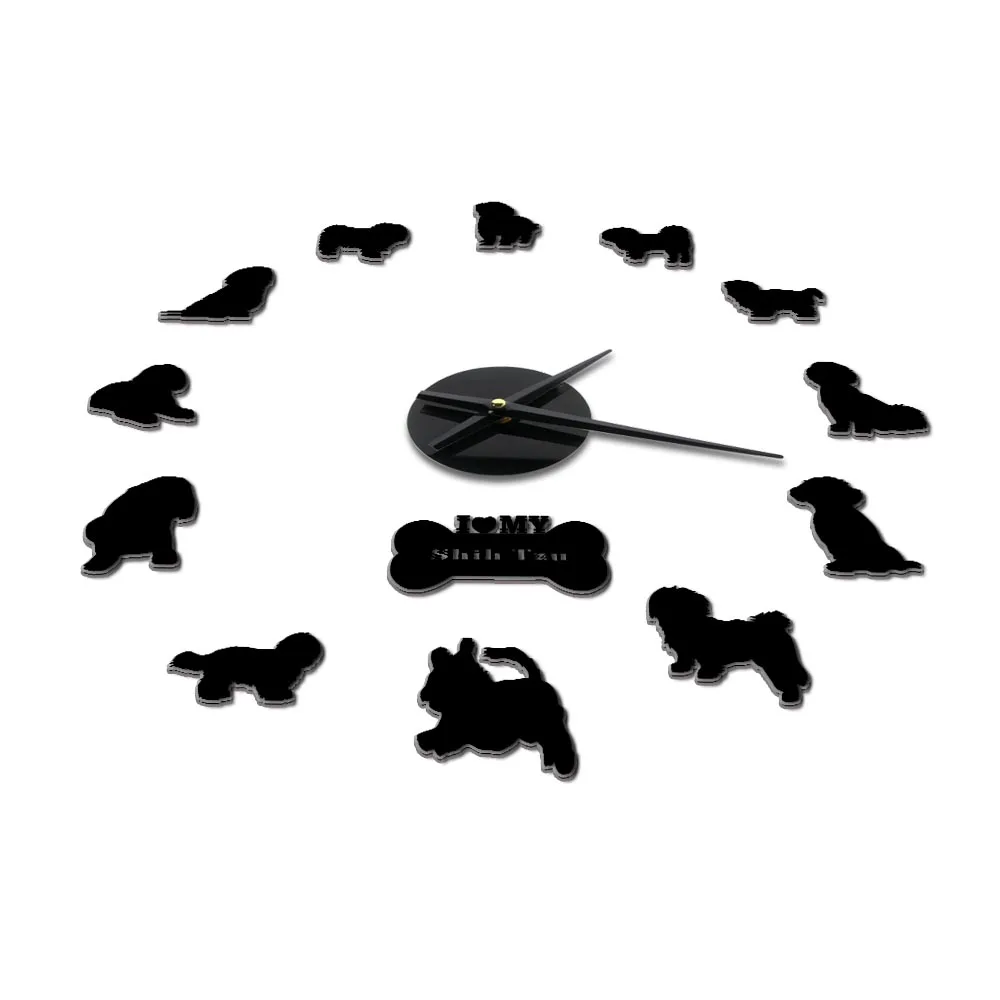 Shih Tzu Dog негабаритные настенные часы DIY эксклюзивный зеркальный эффект щенок ручной лазерный разрез Настенные Часы Самоклеящиеся украшения для дома