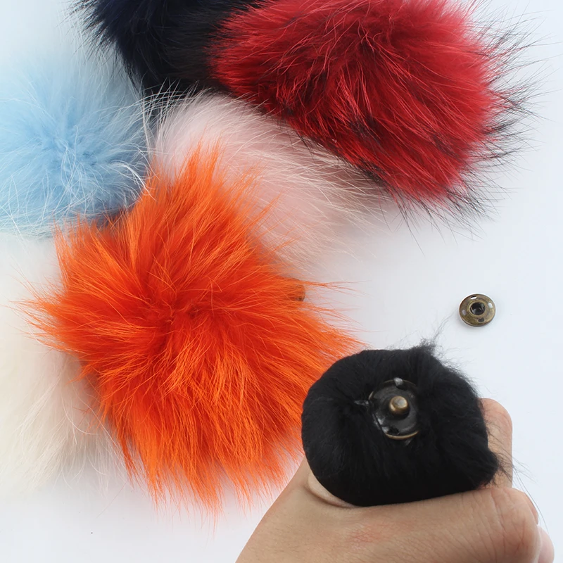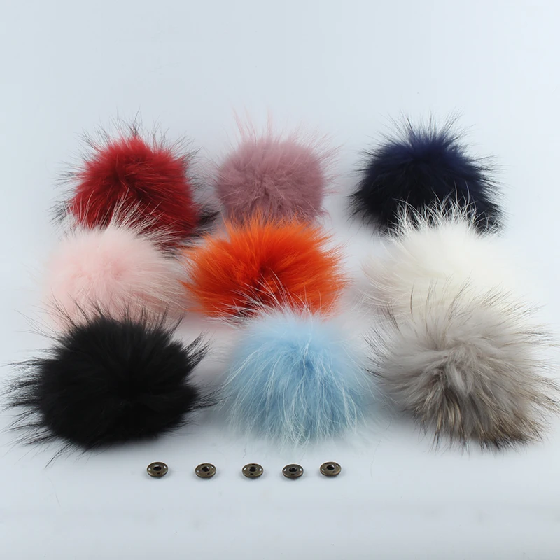Помпон из натурального меха енота, помпон для женщин и детей, 15 см, Шапка-бини с помпоном из натурального меха енота