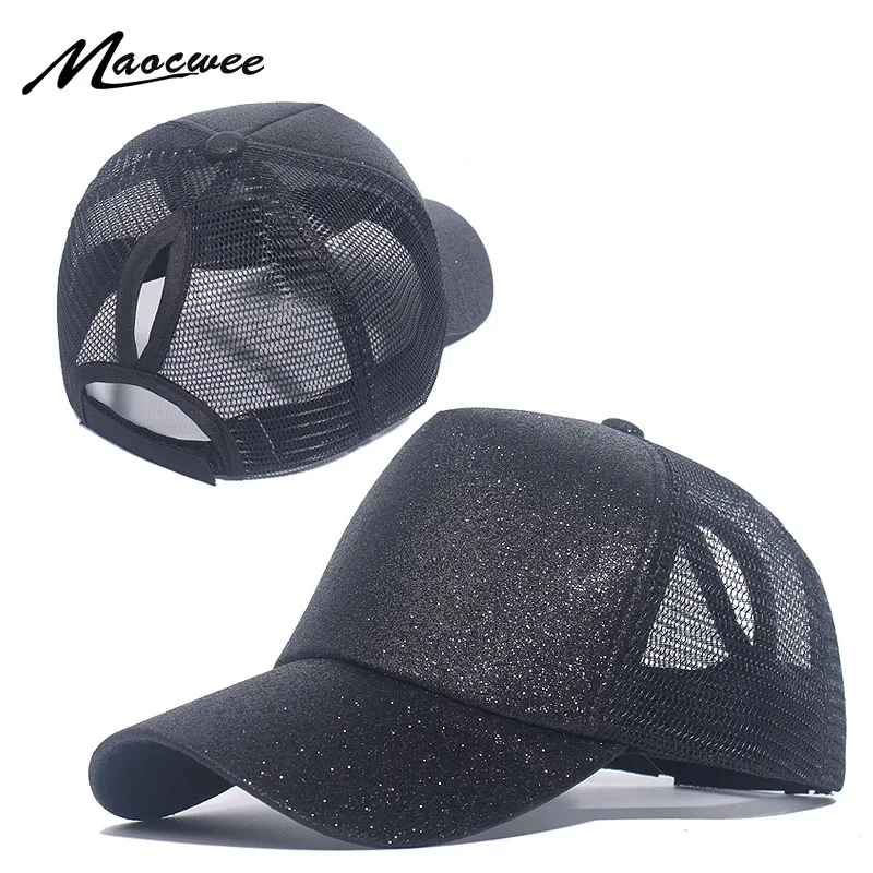 Женская Повседневная Бейсболка конский хвост, Регулируемая Кепка с блестками, блестящая Кепка в стиле хип-хоп для женщин, шляпа для папы, летние блестящие сетчатые шапки
