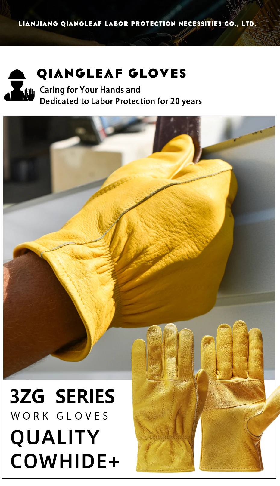 QIANGLEAF, плотные рабочие перчатки из воловьей кожи, промышленные, механические, защитные, для ремонта, сварки, дышащие, Мужские рукавицы 3ZG