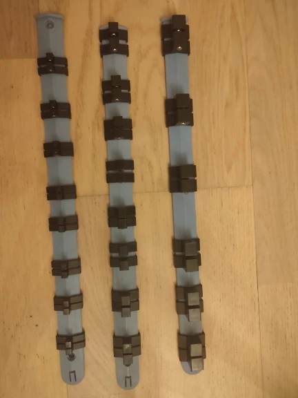 До СПб доставка за 24 дня. Упаковка нормальная (полиэтиленовый пакет + пакет + пакет - в общем не о чем), товар целый. С продавцом не общался. Головок под рукой на 1/2" не было, проверил только на переходнике. Держатся во всех размерах хорошо за счёт шарика. Вставляются и достаются одной рукой без проблем. Все работает как надо. Из замечаний-придирок можно было бы на 1/2" держателей по-больше на планке. 12 шт уж больно мало. Теперь придется покупать ещё таких же, чтобы все было на своих местах. Трэк отслеживался. Забрал на почте. Товар можно рекомендовать.