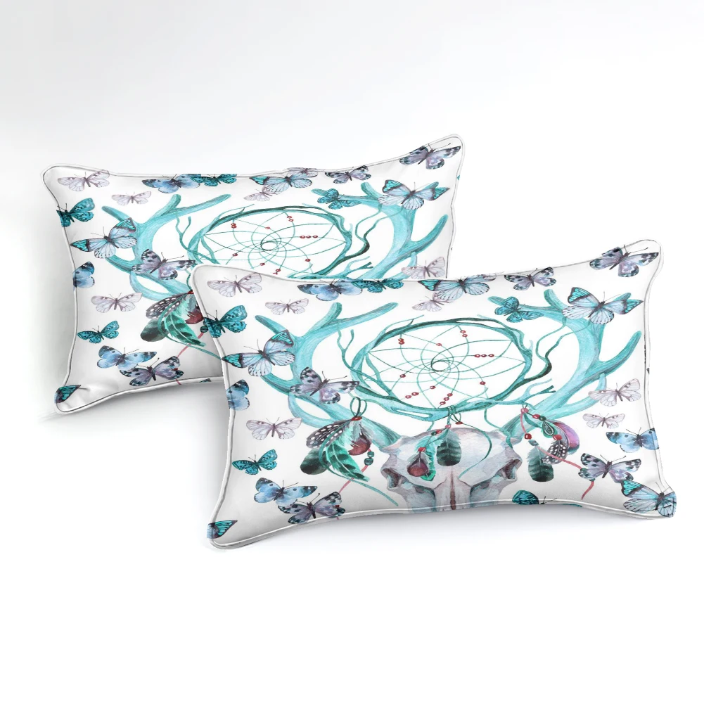 Комплект постельного белья Ловец снов, в стиле бохо, с изображением бабочек, с голубым черепом, с 3d-цифровым принтом, покрывала из микрофибры, 3 шт.