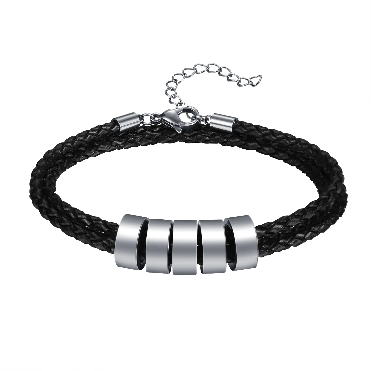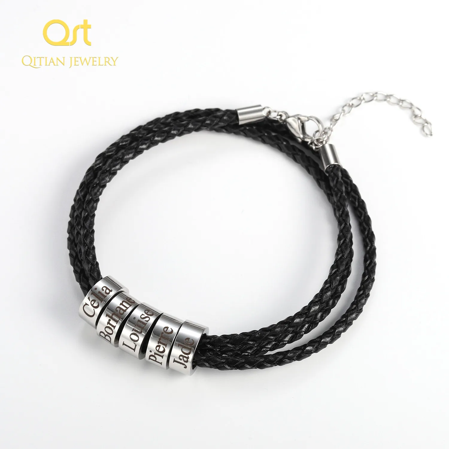 Мужской браслет с индивидуальными именами, многослойные кожаные браслеты с черными бусинами под заказ, аксессуары для мужчин, ювелирные изделия
