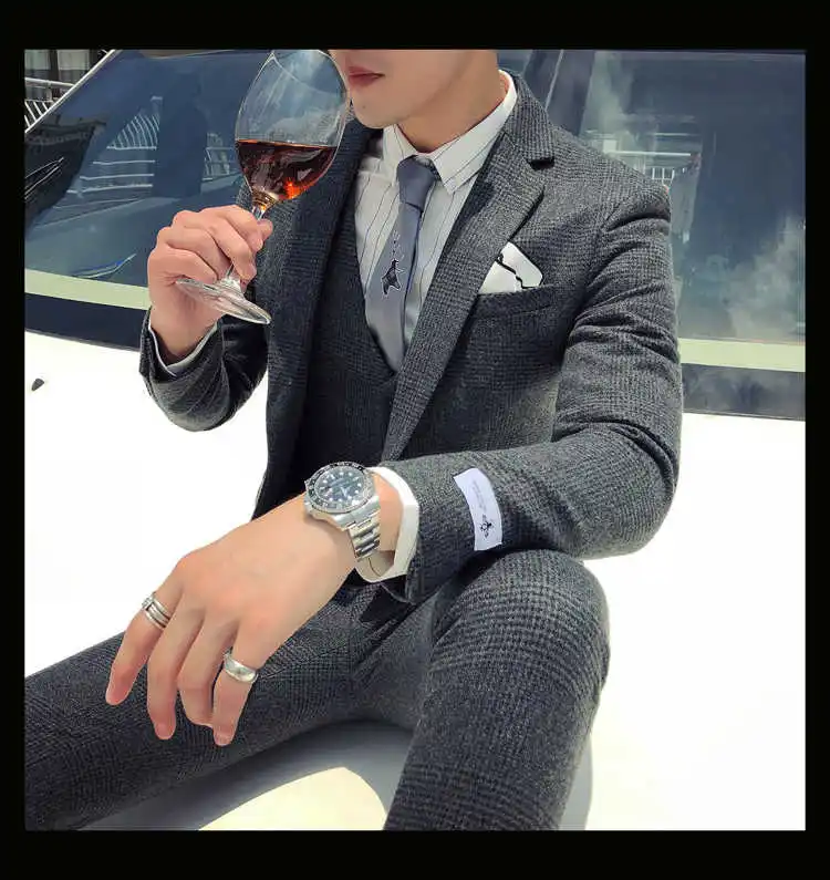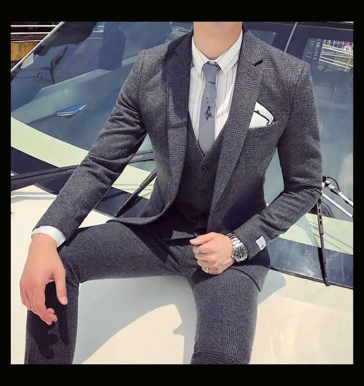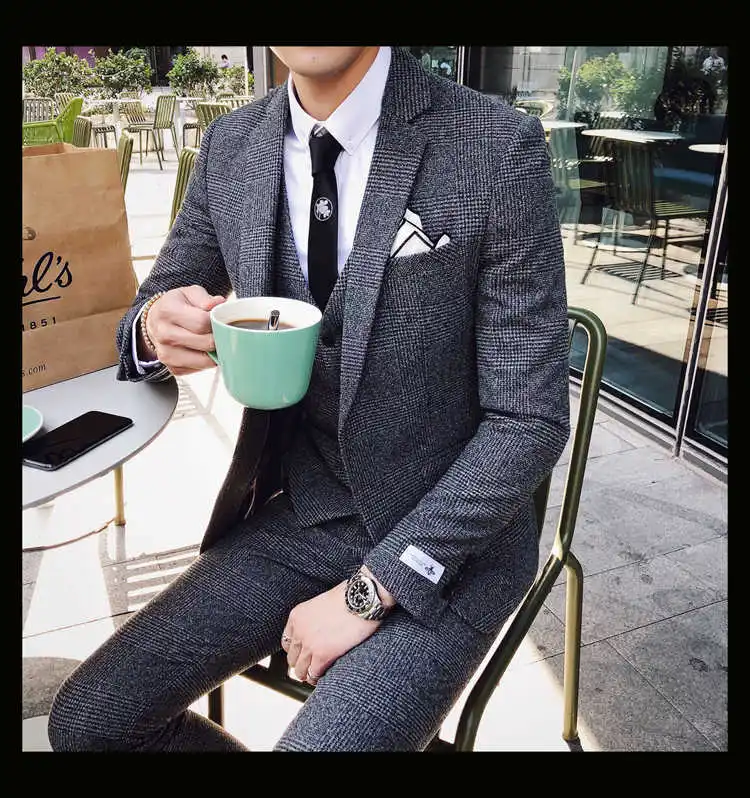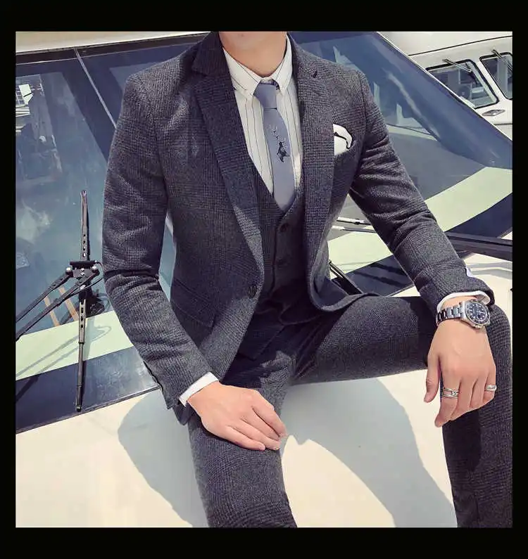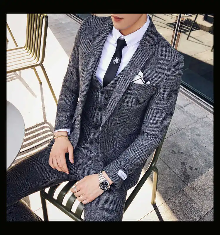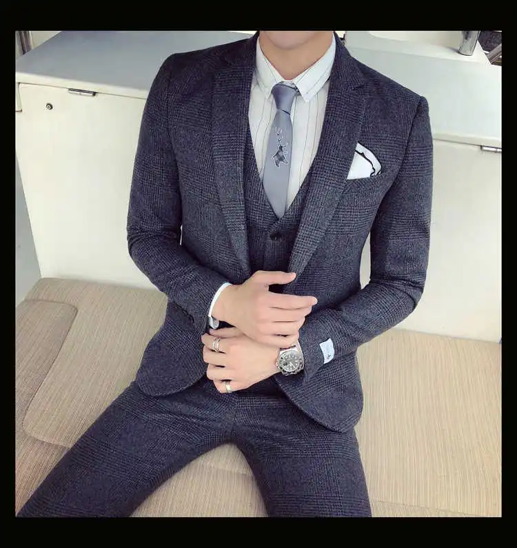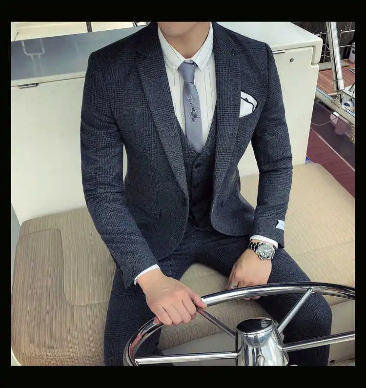 2019 мужской деловой костюм официальный смокинг социальные костюмы мужские Casacas Hombre Blue Terno Прето приталенный серый ретро плед костюмы для мужчин