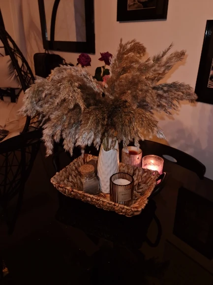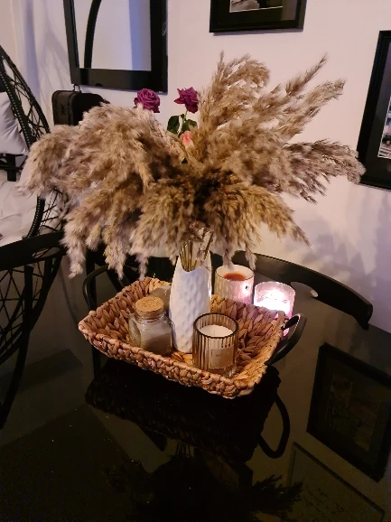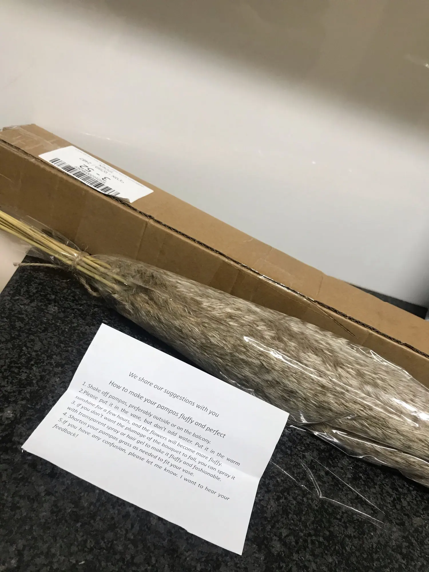 Товар был красиво упакован и закреплен в коробке, чтобы предотвратить разбивание. Трава pampas приятнее, чем я ожидал. Я приложил его к портативному обогревателю и через 15-20 минут он стал таким пушистым и толстым. Я распыил его прозрачным распылителем для волос и разместил его рядом с нагревателем снова ТП сухой. Спрей для волос предотвращает падение травы.