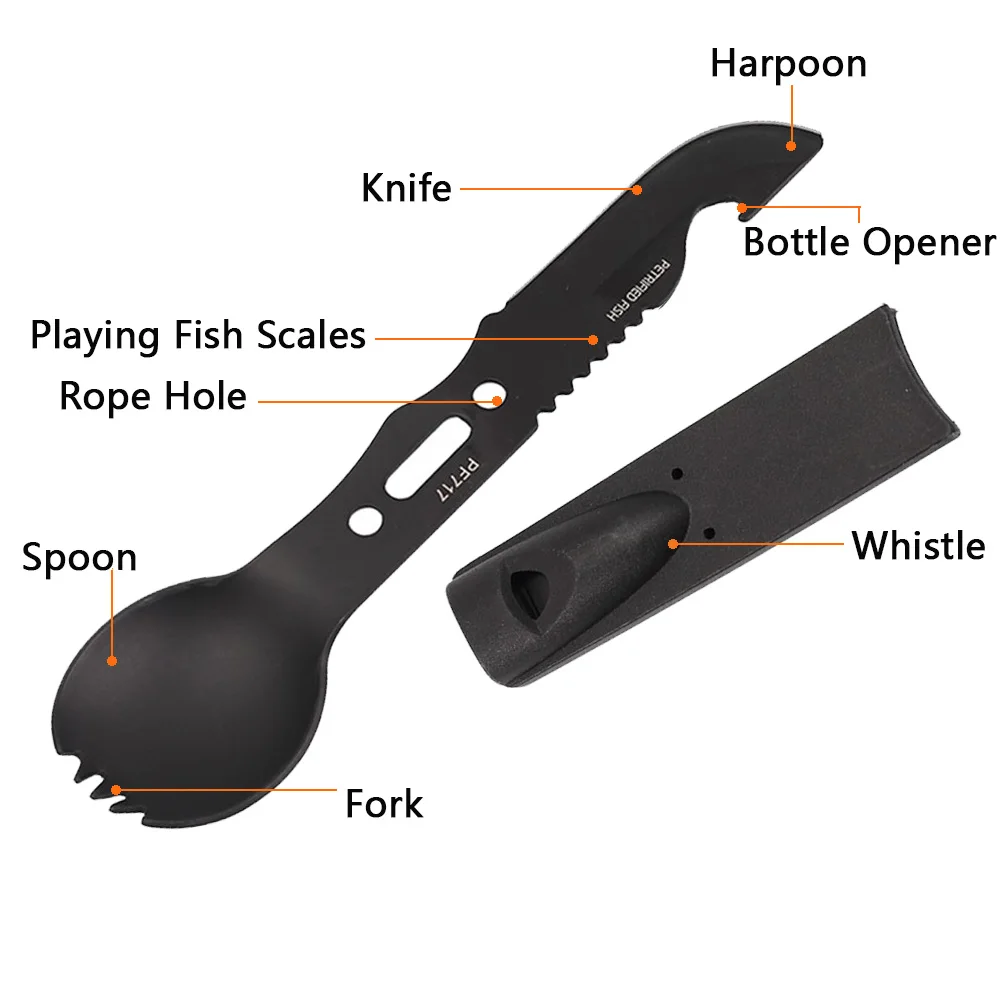 Походная посуда 4 в 1, вилка, ложка, нож, открывалка для бутылок, свисток, портативный многофункциональный инструмент для пикника, выживания