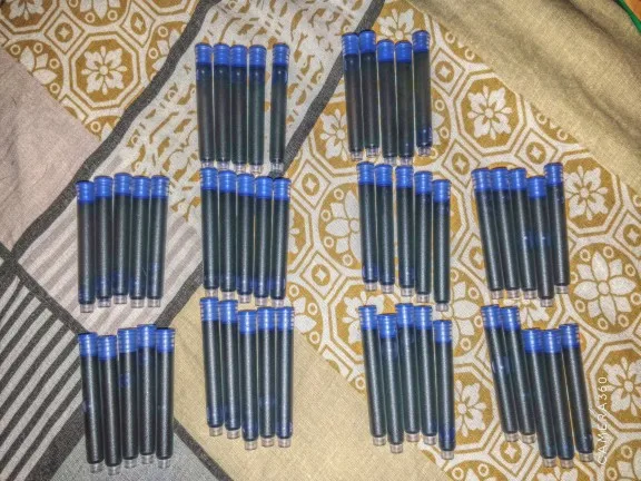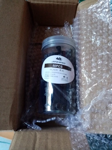 товар получил. пришёл в картонной коробке и дополнитнльно обернут противоударной плёнкой. в прошедшем тубусе было ровно 51 картридж для ручки. про качества чернил напишу позже. но чернила какие-то совсем жидкие и светлые.