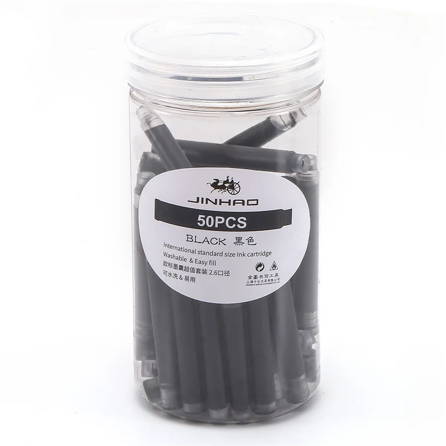 Набор цветных чернильных картриджей, 50 шт., для перьевая ручка Jinhao, 2,6 мм, универсальные стандартные заправляемые Канцтовары, для офиса, школы, письма F612