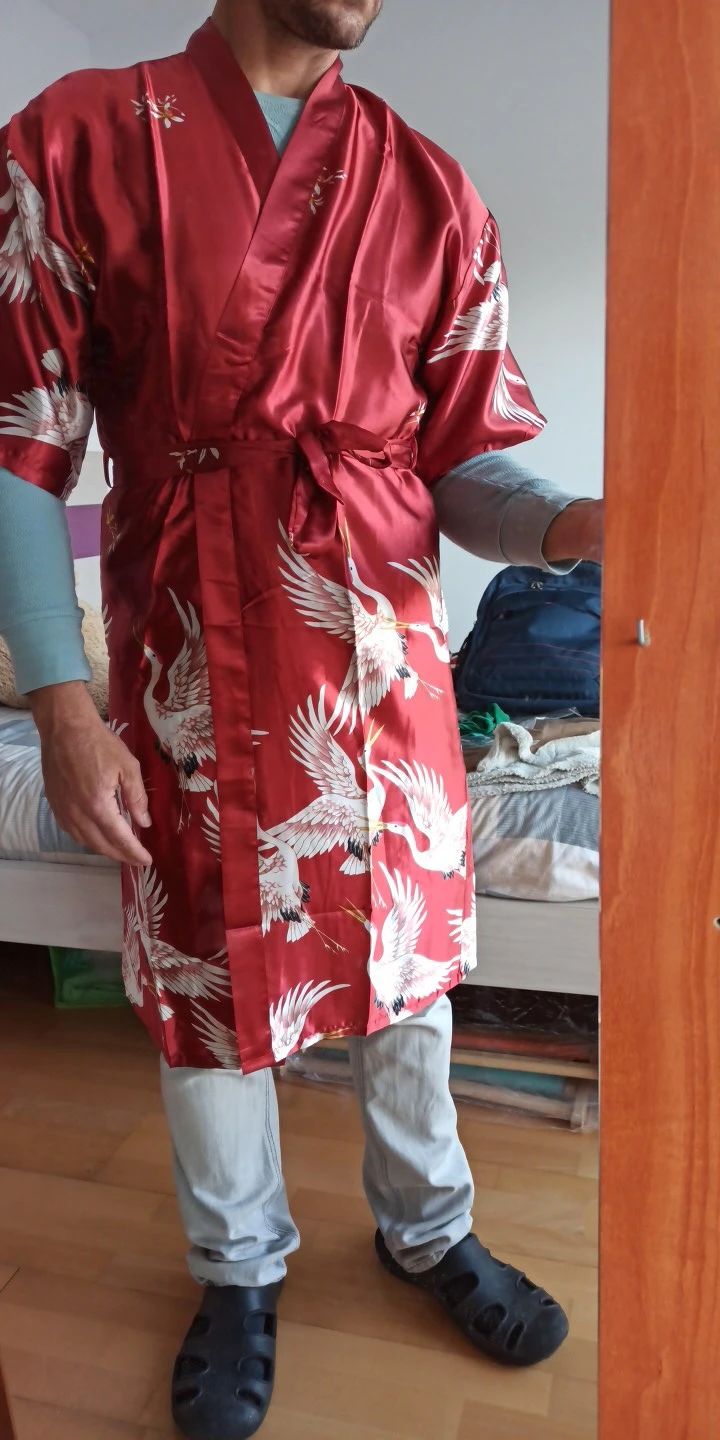 Халатик тоненький,хлюпенький на один сезон наверное ,размер маломерит XXXL на 48 рус. Качество не очень,доставка очень быстрая 9 дней до Спб.в пятерку.Не знаю в следующий раз выбирать буду что то поприличнее.