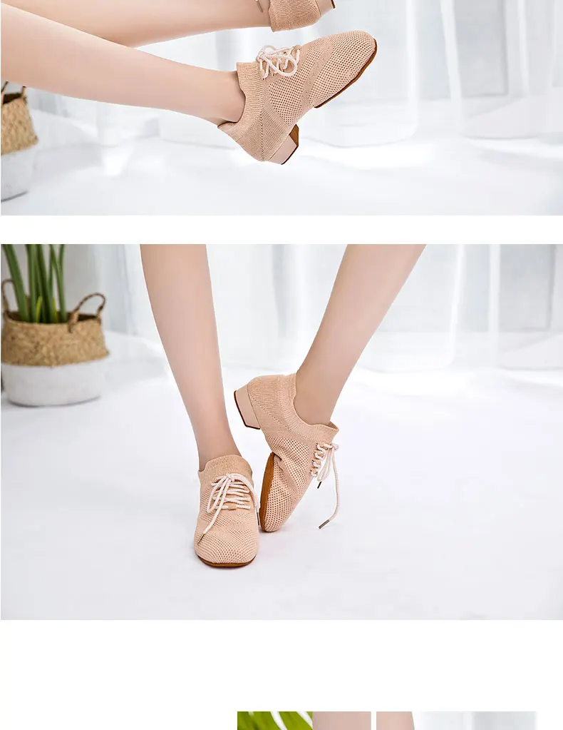 Кроссовки-носки для женщин, дышащие ссветильник вязаные, обувь для латиноамериканских танцев, джазовая обувь, однотонные светильник-розовые, черные