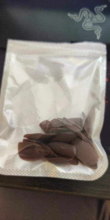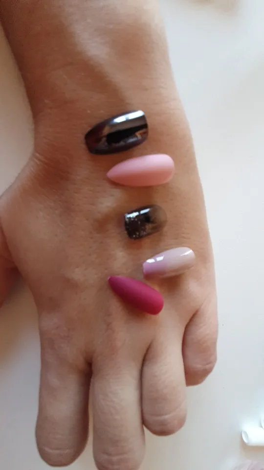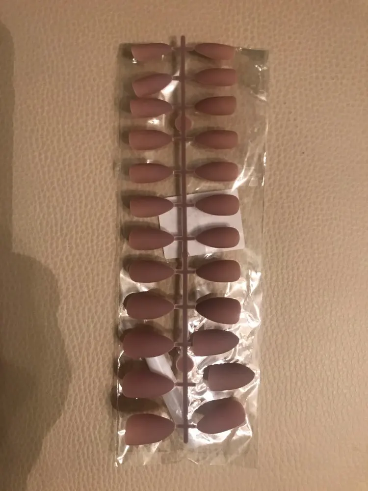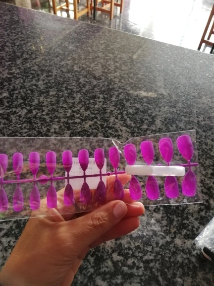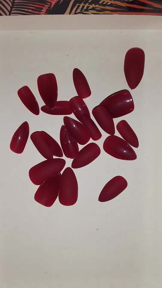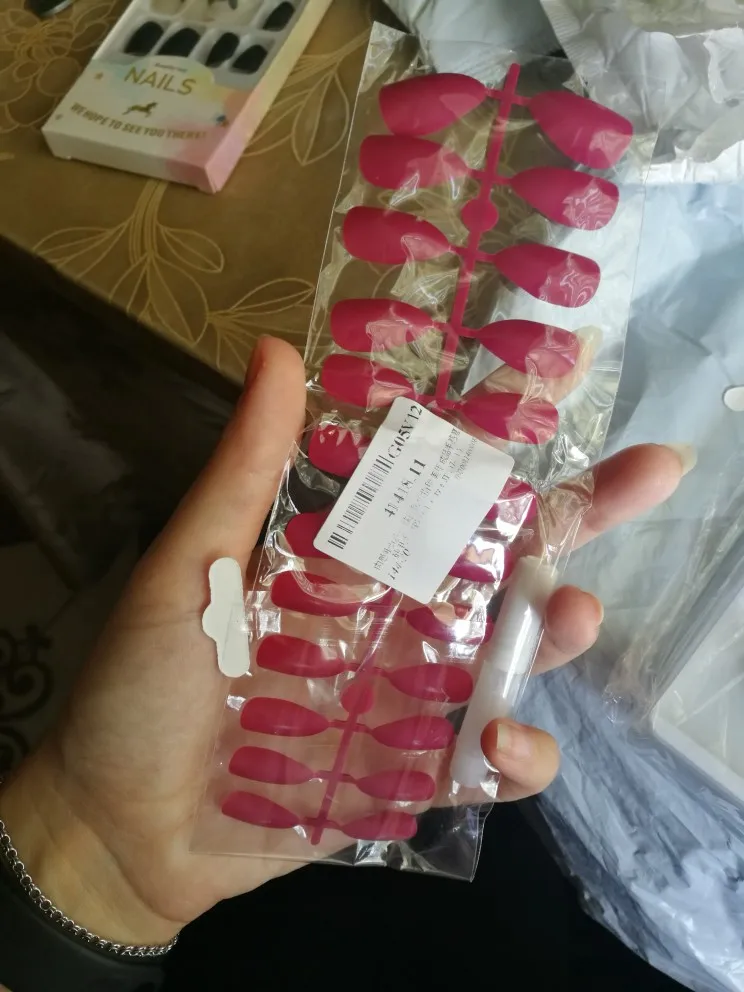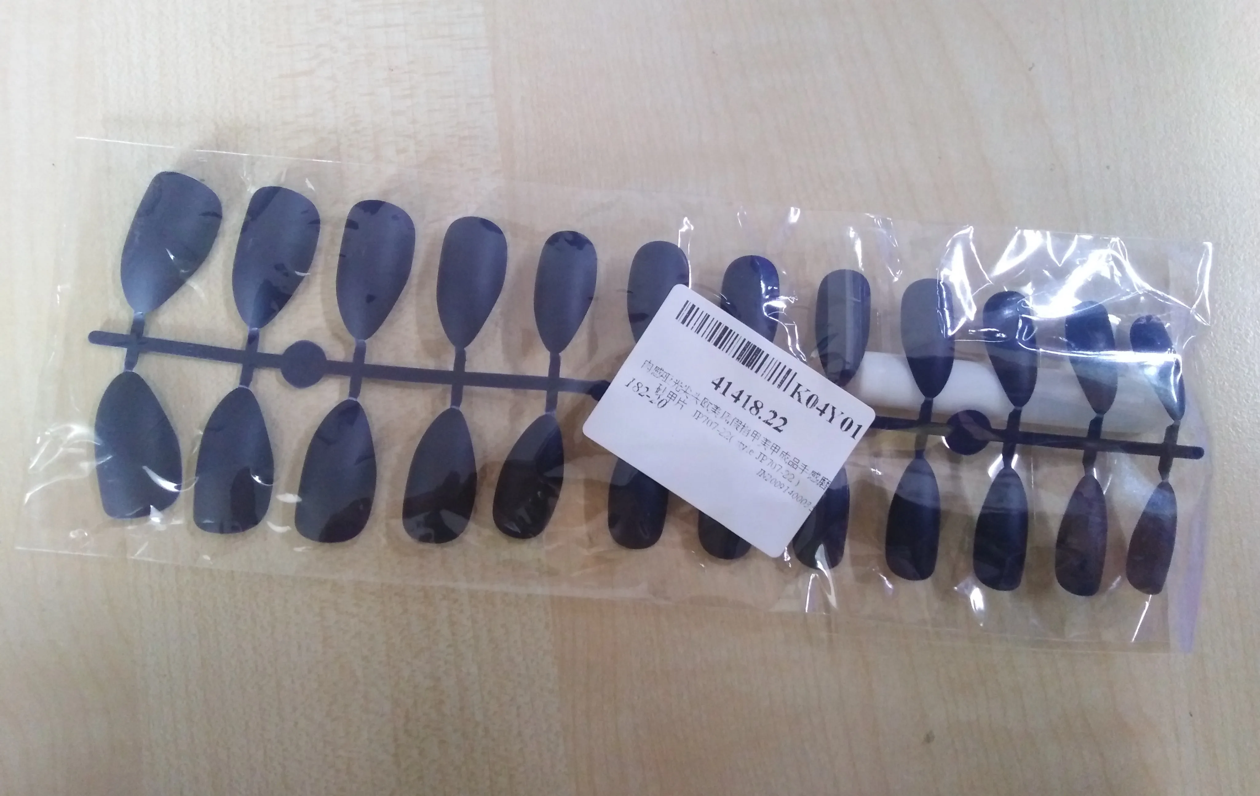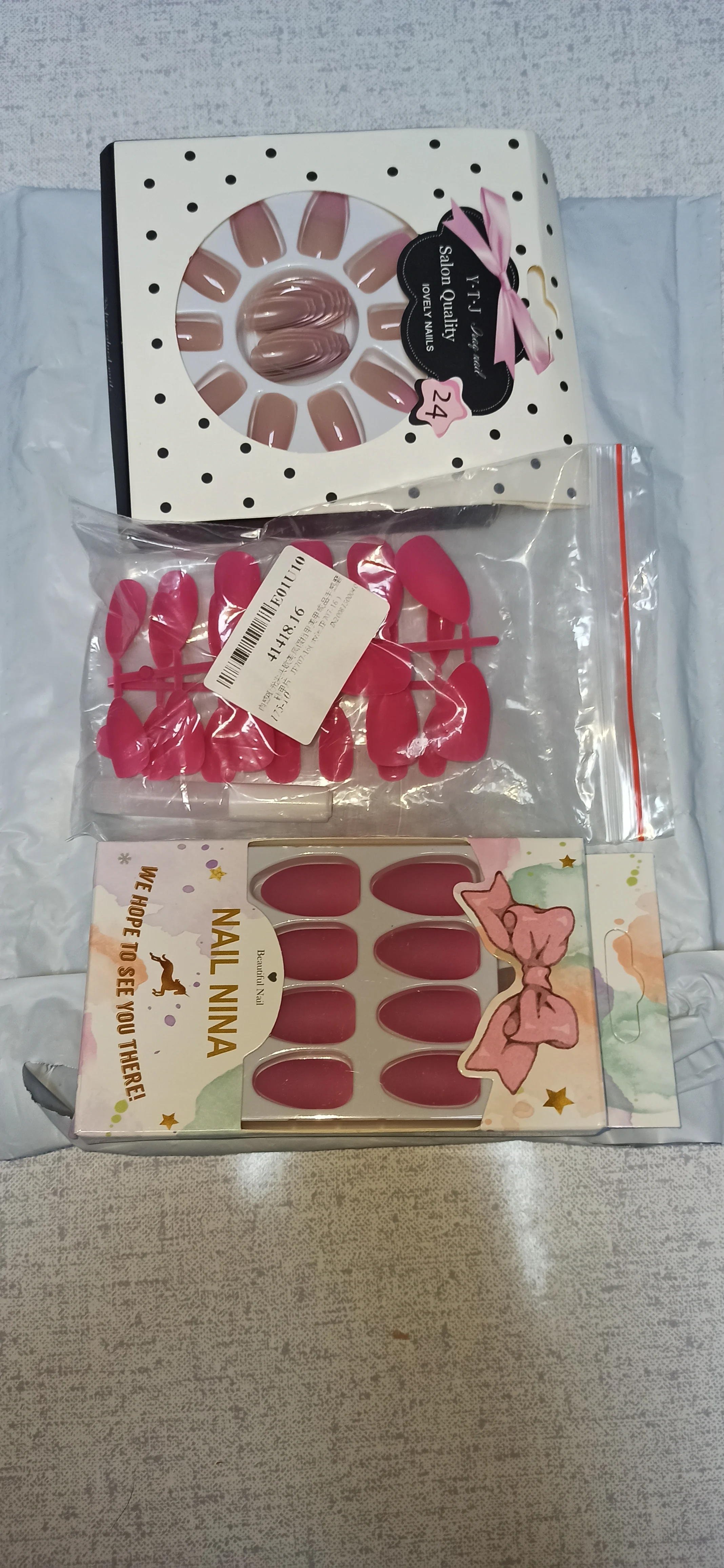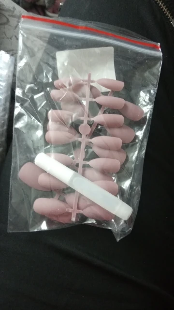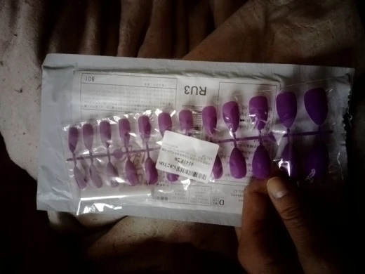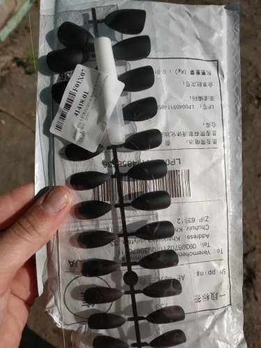 Доставка: Прибули в Україну за два тижні, ще тиждень йшло до мого відділення НП через новорічні свята. Довго проходило митницю. Китайська транспортна компанія згрупувала всі посилки, які були замовлені на Алі в той день, хоч продавці різні. Загальна посилка відкривалась на митниці, пошкодження заліпили скотчем, кожна індивідуальна упаковка була цілою. Запаковане в пакет з пухирцевим шаром і у пластиковий пакетик. Нігті достатньо м'які, що швидше плюс. Різної ширини, 12 пар. Зверху матові, знизу глянець. Слід від кріплення потрібно буде запилювати, але це зрозуміло. Пофарбований пластик по всій масі. Нігті трохи прозорі, маю надію світлі не стануть більше прозорими від клею. Клей в комплекті. Нігті досить зручної довжини, суб'єктивно. Світлі нігті по дорозі трохи повідвалювались від основи, темні ні. Ще не наклеювала, потім доповню як у використанні. З продавцем потреби спілкуватись не було.