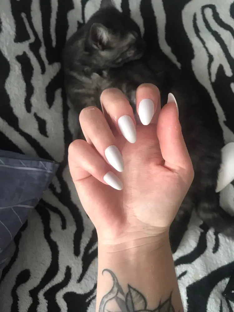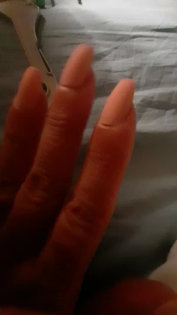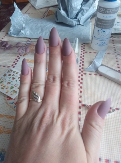 шикарные ногти. пробовала первый раз. подстригла и подпилила до удобной длины. хожу уже 3 дня ничего не отвалилось