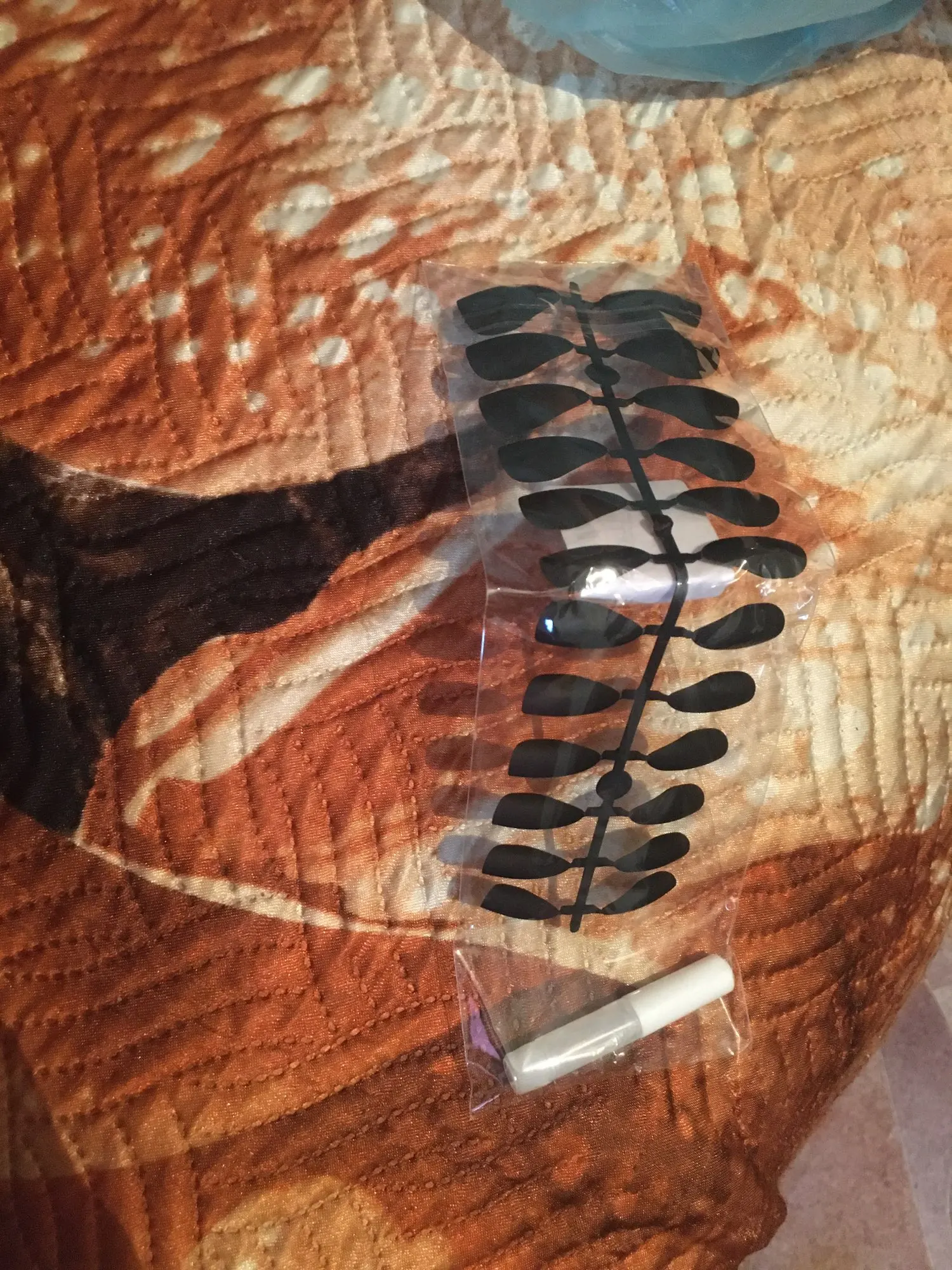 Ногти пришли очень быстро, все цело, клей присутствует и немного похож на обычный клей момент