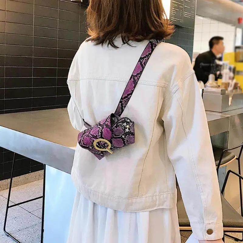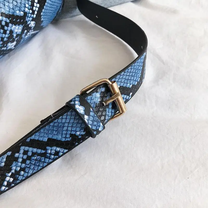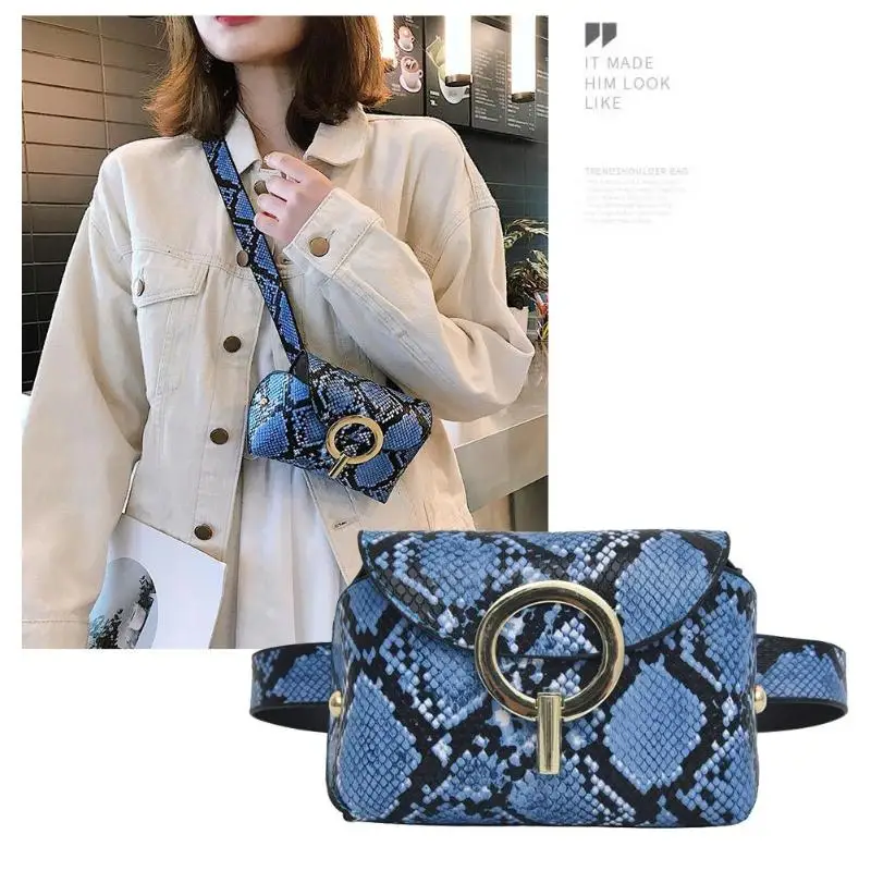 Сумка-мессенджер женская из искусственной кожи, со змеиным принтом, с круглой пряжкой