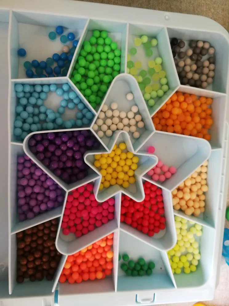Купила микс, бусины хорошие, достаточно ровные, всего 24 цвета и оттенка + 5 цветов прозрачных бусин, но их немного. Склеивать еще не пробовала, но когда положила их на основу, некоторые бусины не соприкасаются, может тогда они и не склеятся? Прозрачные бусины чуть больше, они соприкасаются хорошо. Купила 500 шт. за 100 руб. с бесплатной доставкой. Доставка в Питер 24 дня с момента оплаты, заказ пришел в сборной посылке с отслеживанием.