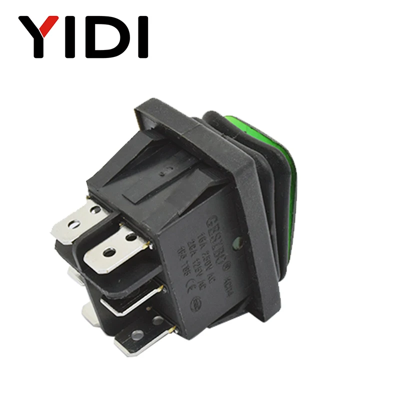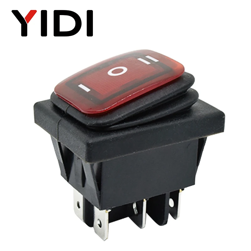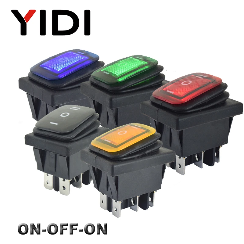 KCD4-203 сверхмощный 16A 250VAC 30x22 водонепроницаемый кулисный переключатель 6-контактный DPDT ON OFF ON 12V 220V красный зеленый светодиодный кулисный переключатель